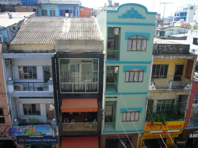 到越南的第二天,背着行囊从携程预定的酒店挪到了网友推荐的范老五区的Hai Ha hotel,酒店的接待厅一尘不染,进门要脱鞋的,老板娘非常热情,送了我地图,后来怕我人生地不熟还要帮我叫Motobike。我跟她说想要有阳台的房间,她就爽快答应了。 打开Room303的房门,第一眼就喜欢上了这个有阳光味道的房间,卫生间和阳台都是朝南的,打开阳台门,鲜活的街景夹着热气立刻扑面而来,向下望出去,小贩,三轮车和背包客们在街上闲晃着,夹杂着时不时经过的摩托车,好不热闹。我开了风扇,让阳台门敞开着,但是拉起门帘,随即便波不及待的把自己扔到了床上。顺手打开电视,电视很小,大概只有14寸,是LG的,写着Made in China,哈哈。随便调了个台,反正外面的人声和车声也会掩盖电视声,喝了口新鲜的椰汁,我眯缝着眼看着阳光从玫红的门帘投过来,风扇吹过门帘,阳光也会微微抖动,这样的情景,好像在描述越南的电影里见过,真好,什么也不想想,就让时间停在这一刻吧,我有点昏昏欲睡了。 半梦半醒,好像听到有敲门声,是电视里的吧,不去管它.笃~笃~笃,又响,大概是服务员?我揉着眼睛打开房门,,,啊?一个下身裹着浴巾,上身赤裸的年轻男子矗在门口!我用英文问他怎么了,他唧唧歪歪的回了我一堆不知道东南亚哪旮旯的鸟语,配上一脸茫然的表情,看那阵势是他认为我错占了他的房间;我忙说你弄错了,麻烦你直接找前台吧,生怕他不明白,还指了指楼下,于是乎关上房门,真是的,搅了我的好觉。笃~笃~笃,哪知道门又执着的响了起来,我有点不耐烦了,他到底想干嘛?忽的打开门,我指着自己的房间门牌,一个字一个字的跟他说3-0-3, 再指着他手里的钥匙牌,1-0-2,他望着我的眼神闪过一丝失望,看上去是放弃了,呼,终于打发走他了。关上门,我忽然意识到,其实怎么可能有人洗完澡找房间从一楼找到三楼的?昏倒,这么明显的“阴谋”,我居然才想到,不禁哑然失笑,原来就听说这里很open,没想到看到单身女子还有主动上门搭讪的,呵呵。