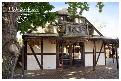 德國小鎮澳洲酒,是在德國喝澳洲的葡萄酒嗎?呵呵,有可能!然而這裏,是產自“德國小鎮”的澳洲葡萄酒。不繞彎子,直接道來:此德國小鎮, Hahndorf,是南澳洲的一小鎮。之所以名之“德國小鎮”,只因早期德國移民抵南澳這片土地時,定居於此鎮。當然,這裏早已不是德國後裔的中心地帶,卻是一旅遊景點。早期的德國移民早已從山上一代代遷移到了山下,散布於是城市中心的各個地段了。朋友就是一德國後裔,家姓Jaensch。他告訴我,他的祖先,兩德國兄弟,自1849年來到Hahndorf,到他們已經是第六代了。在這150多年裏,Jaensch家族在此地已有2000多後裔了。  Hahndorf,這已是我第二次去了,卻並沒因此失去新鮮感。在鎮上,覓到一家德國的菜館(這確實不易),吃到德式的菜肴,已讓我感到很滿足了。爾後,朋友一行又要驅車趕往Cellar Door,這更是讓我喜出望外!