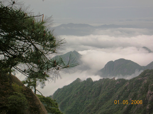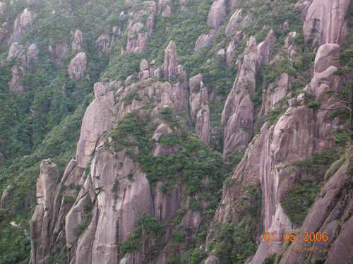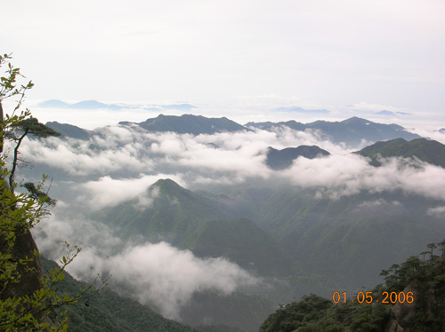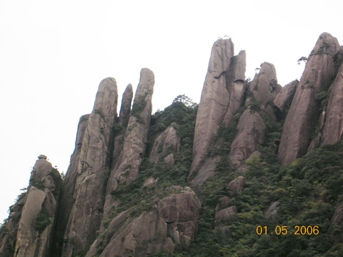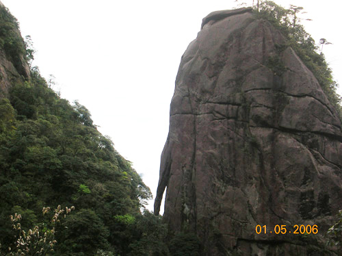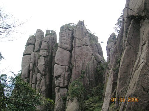 三清山游记 五月一日早上六点三十分从绍兴出发,一行两辆小车,共大小十一人,其中三人小孩。虽然是五月一日,是旅游的黄金季节,但五月一日我们估计游客不会太多,打个回马枪,后来事实证明我们的估计是对的。 一路沿着绍大线往诸几走,早上除了固定的电子眼,基本上没有移动电子眼,估计是不到七点,警察还没有上班,车速基本大75码左右。在虎扑岭交了第一笔路费,20元,在高速上可以开50公里,但警察也得吃饭,哈哈,不管这些,还是继续赶路吧。 诸几上高速公路的指示牌放得有点问题,在两个十字口前就有了高速公路的提示牌。50分钟后,约7点20左右在诸几上了杭金衢高速,上高速前,先停了几分钟,准备了一下,让几个孩子方便了一下,免得待会儿在高速,孩子们急着要上厕所。 上了高速后,就开始发挥大排量车的作用了,轻踩油门,汽车就开始飞跑。但还是小心为好,后就固定在110码的速度左右。在金华稍作短暂停留,又继续前进。过了杭金衢高速同金丽温高速路的交叉后,天公不作美,开始下起了小雨,但没有影响我们的兴致,只不过驾驶员得更加小心了。过了衢州,高速限速为100码,并且电子眼比较多,所以只好降速行驶,一口气就到了常山,又作了一会儿停留。约行驶3小时左右,车队就行驶到了杭金衢高速的终点,过收费站,计人民币一百元整。接着就进入江西境内,由于即将到达目的地,大家的兴趣又高起来,两只对讲机说个不停,并且雨也开始小了,也可以看一下窗外的美境了。约十多分钟,就到了江西省上饶市玉山县的高速出口,收费10元。 在收费站问了一下三清山的大致路线,结合我们事前计划的,就开始向最后的目的地前进,出高速一直直行,在第一个红绿灯处向左转,然后沿着指示牌顺着新建的环山公路(玉紫线)前进。一路上路况很好,路上基本上没有车,行驶到了双明镇(村),突然发现了警察在检察,开近停车,那个警察给了我一张纸片,一看,原来是临时测速证,上面写着我们现在的时间是11点55分,并友好的提醒我们,让我们开得慢一些,态度很友善,让我对警察有了好感,大家边开边聊,绍兴的交警的态度同江西玉山交警的执法态度真得不能比。随着环山公路的沿伸,我们越来越对玉山交警赞不绝口,原来路况都是水泥路,但基本上都是路随山转,开快车真得有点险,并由于刚下过雨,有很多地方都塌方了,交警给我们的限速时间也成了温馨提示,他们不是为了象我们绍兴交警一样为了抓收入来限速,况且后来根本没有人来收这张单据,而是真正为了我们的安全。我建议,让我们绍兴的交警都去一下江西,感受一下江西交警为人民服务的态度,什么叫以人为本,这些不是西方社会才有的,我们中国也有,就在江西,就在我们中央红军的发祥地――江西,离绍兴才4个小时的车程。 环山公路的旁边是金沙溪,说是溪,其实也是一个湖,只见湖水清澈见底,我们终于忍不住冒着细雨下了车,开始踏上了江西这一块红色的土地,贪婪的呼吸着这绿色大养吧的带着雨味和乡土味的空气。但由于天气和时间关系,我们只能继续上车赶路,路上基本上没有车,有的,也是挂着浙江牌和上海牌的车,估计同我们一样,是循着这三清山道教圣地而来,是为了躲避城市的喧囂而来,是为了欣赏这湖光山色而来。 12点钟30分左右。到了一个不知名的小镇或大村,只见都停满了车,还以为到了,一问,还有好些路,都是吃饭的,我们一行也下车加入了这行列。先到了一家较大的旅游定点饭店,一问价,比我们绍兴城南的那些饭庄还要贵,连忙跑到约20米左右的一家名为浙江野菜饭店(大约是这个名,记不清了,抱歉)一问,价格相差近一半,我连忙跑回去个理由离开那家旅游定点饭店,来到浙江野菜饭店,点了一桌江西特色菜,但要求不要辣,同去的女同胞们要求,我们得尊重女性,这是绍兴男人的优良品格,况且都是我们的领导,哈哈,又叫了六瓶南昌啤酒,共花了213块钱,大家都说值这个价。在一块吃饭的,有一队也是绍兴人,大伙儿感觉特别亲。看来志同道合之人还很多,心中油然升起一股劲,得好好欣赏这三清山的美景。 用了中饭,一行继续赶路,约还有20公里,半小时后,到了一个三叉路口,向右是往婺源,左行往三清山,两个交警在执勤,而车仍很少,继续前进,路开始往高处走,行车得小心,到了第二个三叉路口,往右是往三清山,往左是到玉山(后来知道这是一条从玉山往三清山的老路)车开始多了起来,照样有交警在执警。车进入了老路,相对较窄,由于是中午,所以基本上是进山为主。2点钟,我们终于到达了目的地――三清山。 进入第一道关时,一个工作人员前来收费,每辆车10元进山费,没有办法,只好交发这进山费,否则他不给你进。到了停车场,车特别是多,门口有几个警察在执勤,问了一下上面可否还有停车的地方,警察很热情的让我们继续往上前,并提醒我们,如果没有,再回来停,开了10多米,到了第二道关,说上面只有一个停车位,我们两辆停不下,只好调头回到第一个停车场,停车费30元,如过夜则交40元(建议交30元)。下了车,稍作准备,一行人上山进入第二道关,不用收费了,步行10分钟,到了景区门口。 一看,门票费涨价了,到了130元,涨了30元,索道费也涨价了,上行65元,下行55元,涨了20元,并且没有团队优惠票。没有办法,就分别买了门票和索道票,开始排队等候索道。同我们估计一样,人不多,所以20分钟后,我们就上了索道,开始了38分钟的索道之行。索