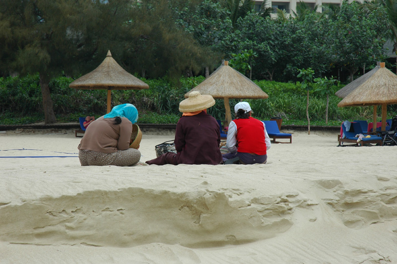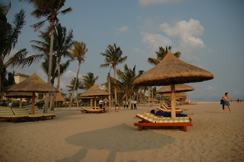 过年前就已经订好了上海/三亚的来回机票以及酒店。但是不经意间在网上看到了一篇令我心惊胆战的文章,讲述了他们在天涯海角的恐怖遭遇,直接导致了我们根本放弃了此处景点。 3月17日,中午12点05分,搭乘南航的航班离开浦东机场,于下午3点左右抵达三亚凤凰机场。乘坐出租车抵达 凯宾斯基 酒店,车费打表约25元。大约15分钟左右的车程。我们刚上车的时候,司机开价50元。由于事先已经了解酒店到机场的距离仅为10公里,所以要求司机打表。可是到了酒店2天后,才发现我们带去的三角架不见了,猜想是否司机故意没有让酒店的行李员取出。去跟酒店交涉,他们说既然我们不能提供出租车的发票,而且也不是酒店安排的接机,所以他们也是无能为力。此举似乎有点不太符合 凯宾斯基 这块牌子。我们是订的山景房。1250 / 晚,含早。包括服务费以及政府税。酒店的房间很大,很新,床也很大。但是感觉床架子的设计有问题,走路时腿很容易就被绊到。卫生间和淋浴房是分开的,阳台上有大浴缸,可以一边欣赏风景,一边享受。当天晚上就在酒店里中餐馆吃的晚饭。点了文昌鸡,其他的忘了,总之大约4个菜,2瓶啤酒,400多块。很贵。 3月18日,由于LG带的大多是长裤,决定去三亚市区内买几条短的,两人乘上了酒店门口招徕生意的面包车,到了解放路(10/人),司机让我们下车,说这里离步行街已经很近了,没想到我们还是步行了大约半个多钟头才到步行街。当然我们并不介意,因为一路上也能看到当地居民的真实的生活状态。买好LG需要的短裤,LG又看中了海南衫,于是一人买了一件(168/件)个人感觉这个价钱有点贵,不过由于是在商场里面买的,也不能还价,看着质量也还可以。中午就在麦当劳里解决了,里面的辣汉堡吃起来感觉比上海的要辣很多!又在街边买了一些芒果,7块钱,买了大约2个大芒果,4个小芒果。没有去传说中的第一市场。然后搭乘204路车(1块/人),在友谊路换乘206路回到酒店(2块/人)。回酒店后,忍不住换了游泳衣,在酒店漂亮的游泳池里嬉戏一番。晚饭是在酒店的宝来纳吃的,点了一个二人套餐,端上来后却是冷的,告诉服务生后,换了一份,还是不够热,感觉就好像食物并不是现做的,而是半成品用微波炉加热的。跟我们在德国时吃的食物简直就是天壤之别。2扎淡啤加上2人套餐,接近400元。LG直呼不值。 3月19日,早餐后,决定自己出去走一走,跟LG两个人,出了酒店,就往着天涯海角的方向一路慢慢走去,一路上有很多拉客的三轮车,到天涯海角只要1块钱一个人,不过由于我们觉得步行比较有意思,遂没有上车。途中看到有一个爱心大世界,里面有一些动物表演,买了门票以(55元/人)以及园内电瓶车(10元/人),园内有一些老虎,鳄鱼还有大象表演,跟在泰国看到的差不多,并无新意。不过里面也有一个海滩,倒是可以去走走,几乎没有人,同LG同志两人倒很是享受了一下空无一人的海滩,以及海滩上各种各样的贝壳。(当然都是一些小小的,那些很大的比较好看的,早就被当地人捡了卖钱了。 出了爱心世界,搭上一辆三轮车到了天涯海角的大门口,想想在网上看到的文章,终于没有买票进去。(60元/人,不过门口有很多人说是帮忙可以买到优惠票,只要30块/人,不知道有什么区别?)我们两人就在门口买了2个大芒果,然后乘出租车回到凯宾斯基(8块)。回到酒店已经是3点左右,在我们平时吃早餐的地方,吃了晚中饭,也可以叫做早晚饭,LG要了汉堡,我要了印尼炒饭,味道不错。大约花费200块。今天最省,因为没有吃晚饭。但是9点多钟时,LG同志觉得有些无聊,遂到酒店大堂吧,要了饮料,坐在沙发上,享受了一下美丽的三亚湾的夜景。 3月20日,10点左右离开 凯宾斯基,乘出租车(150块)去了亚龙湾的 天域酒店。我们订了一期的豪华海景大床房(1410 / 晚,含早以及服务费,不含政府税)感觉酒店的房间有些旧了,卫生间也相对凯宾斯基来说有些小了。阳台也小,床也小一些。不过从房间里看出去的景色还是很美的,大海,沙滩,海中的小岛,椰子树,沙滩上嬉戏的游人。亚龙湾的沙滩感觉比三亚湾的要细软一些。当然也没有在三亚湾处处可以看到的贝壳了。晚上在酒店的船屋海鲜餐馆吃饭。2个人,4个菜,2瓶啤酒,540元。恶巨。 3月21日,因为第二天下午的航班就要返回上海了,于是我们决定选择一个一日游的景点。我们选了槟榔园(好像是这个名字)和吴蜈支洲岛,槟榔园里面有古老的蚩尤部落,还有一些黎族和苗族人生活在那里。门票好像是165/人,感觉也没什么好玩的。至于蜈支洲岛123/人,如果不打算参加潜水和水上运动的,建议不用去那里。因为风景并不出色。上午10点半左右离开天域酒店,大约5点钟回到酒店。在从蜈支洲岛回来酒店的途中经过芒果园,遂停车买了一些芒果,1.5/斤,买了一大堆,10块人民币。又新鲜又好吃。从来没有吃过那么好吃的芒果。晚上在酒店的椰林饭店吃的晚饭,再次点了文昌鸡,还有椰子饭,感觉比较适合本人的口味。消费大约300左右。 3月22日,航班是下午4点的,约了前一天带我们一日游的的士司机2点半来酒店接我们去机场,本想Late Check out, 但是电话打到前台,被告知因为酒店房间已经订满,一定要我们12点退房。没办法,准时退房,将行李寄存在酒店里。我们到酒店对面的购物中心里逛了一下,也没什么可看。仍旧回到酒店的“面屋”,LG和我每人要了一碗面条,另外叫服务员小妹拿了一碟黄辣酱,吃