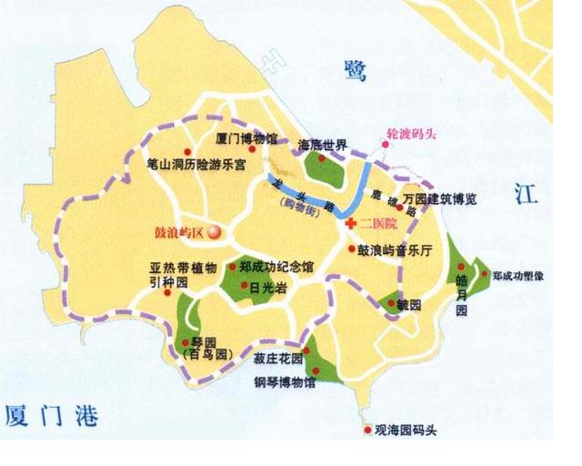 | 厦门,在我的脑海里,一直是宁静、阳光、沙滩、海风、椰子树的印象。当我决定踏足它的时候,在网上费了老大的劲才下到几张清晰可用的地图,在此贴上,供以后要去的驴友作为参考。因为决定得比较仓促,什么都没有来得及准备,只有利用了前一天晚上两三个小时的时间在携程上看了些许游记,记下一些景点和小吃。
