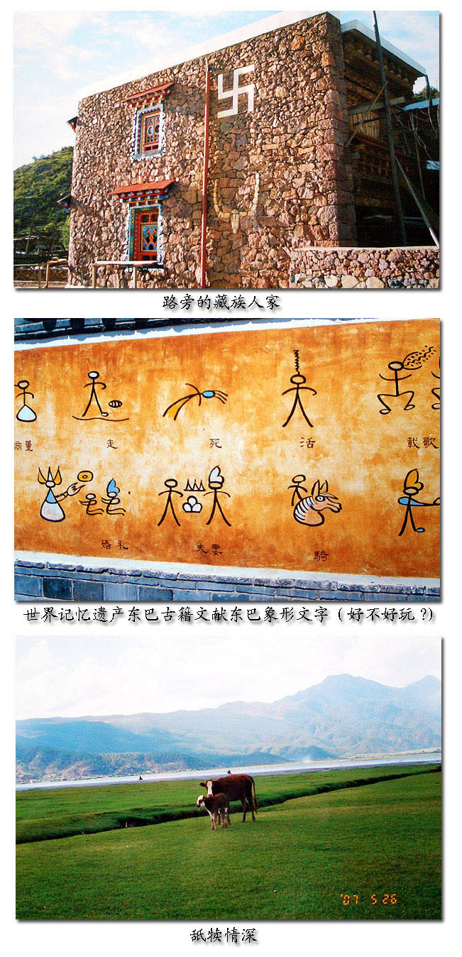 三天的行程,围着玉龙、哈巴雪山兜了一圈,见识了这里的风土人情,领略了这里的天高地阔。象观赏一部风光片,临近尾声的时候总有些恋恋不舍,恨不得把所有好玩的、好吃的都通通打包带回北京,无奈,木师傅沿途给我折的许多花草,特别是那一把鸡豆草籽,因失去了水份而不得不又留在了云南。同样,我也把我的善良、友爱留在了这里。