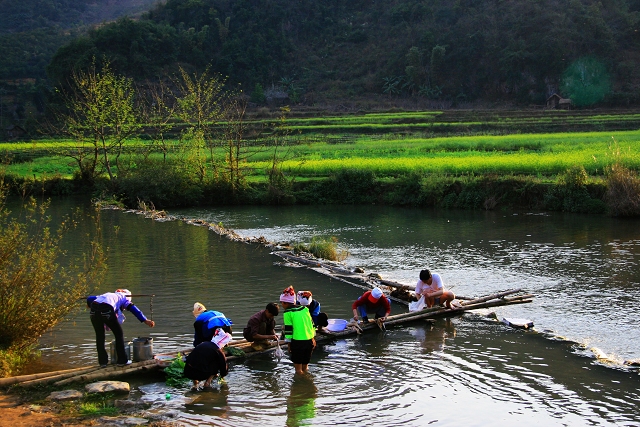转眼鼠年春节就到了,国家地理评出2月份中国最美最值得去的地方是罗平、元阳,让我回想起去年春节的罗平、坝美、元阳自驾之行,灿烂的罗平、多彩的元阳、甜美质朴的坝美,还有美的想让人跳火车的湾子水库。。。老公总是批评我游记没有发表完整,惭愧惭愧,愧对前2篇一千多位看客。这里落下的7篇都补上,希望对后来的寻路人有帮助,毕竟云南自驾游的记录太少了,毕竟又到罗平最美时!出发吧,亲爱的同志们!! 考虑到一天艰苦的旅程,我们7点半起,吃碗米线赶路去广南的坝美。从罗平到坝美应该有两条路,一条罗平去广西百色方向,经广西西林到坝美。还一条罗平—丘北---砚山—广南---坝美。第一条路没有人走过,但距离上应该短很多,我们到了坝美才发现有长途车通西林,否则我们就探索一下了。下面汇报一下到坝美的路程、路况 8点10分出罗平,8点30从以且出口拐上去丘北省道,该路晚上10点到次日6点不准通行,原因是山路、雾。雾是青色的,一路上如进入鬼界,忽明忽暗,看不到行人和车辆,有点恐怖,怕鬼的人勿来。9点半到五龙乡,下车打听有没有去坝美的近路,当地人都不知到。这一路上五龙乡、高良乡只有云南深度游的人才能到达,由于免受了外界的干扰这里仍就非常民族化,路上很多年轻人穿这各色的民族服装,虽然这里是壮乡,但从服装上看这里肯定是多民族聚居区。镇子上过节有集市造成堵车,因此比预计晚了半小时,12点到丘北,这段路都是山路,过了双龙营后路平了。丘北进城路比较复杂,注意不要走丢了。12点半出丘北县城。这时我们算错了时间,以为广南到坝美还要3小时,按此还要7-8小时,我们当天怎么也赶不到坝美了,于是LP急了一路狂开。13点30左右到炭房(正常时间应该1小时)上去砚山高速,13点45出砚平出口上323国道去广南方向,14点50到珠街镇(省10分钟)转入省道,珠街镇是个很大的民族乡镇,经常有比较大的集市,听说很有特点,有时间可以逛逛,能买到一些意想不到的东西。15点40到广南(这段45公里路破、山路,比较南走,约需1小时),16点20到坝美,这是条县里建的旅游路线,比较好走。坝美村口有个很大的停车场,过夜停车费15元,坝美好热短袖、衬衫足以。 收拾好东西坐马车进村,2元一人,狂颠20分钟到洞口,进洞套票40元/人。坝美没有公路与外界向通,进出坝美只能走水路,经过