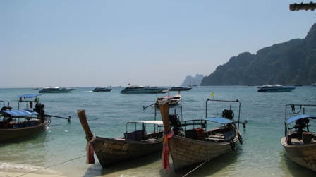 和杨导约定1/13早上7:30来接我们,没想到睡过头了,一觉醒来8:00。匆忙梳洗后换了泳衣(要浮潜的话,建议先换好泳衣),外面再罩上汗衫,连早饭也来不及吃就上路了!之前看前辈们的游记,觉得做快艇出海会很颠簸,本人又极易晕船,所以觉得不吃早餐也有好处,省的晕船呕吐。 和我们同行的还有来自首都北京的小王夫妇,能和同胞共游PP,也是一件快乐的事!坐车大约45分钟便来到码头,杨导嘱咐了2句就把我们交给了船老大。9:00左右广播通知上船,在登船之前就像许多网友介绍的,要在你的手臂上贴粘纸(粘纸就好比是船票,所以请去的朋友们要特别当心)。我们的航程特别的顺利,几乎没什么颠簸,可能是天气比较好的缘故吧,安达曼海呈现了他特有的魅力,从前看前辈们的照片时,还以为是制作过的,不相信有那么蓝的海水和天空,现在身临其境,才不得不为之折服! 航行了大概1个半小时,我们就来到了小PP岛浮潜,我看到了祖母绿色的大海便难以自制,自命游泳水平还不错并征求了导游的意见,没穿救身衣就下海了!看着周围的老外个个身着救身衣,不如我来的灵活,自觉又为中国人挣了一口气!海水温度合适,带上自备的游泳眼镜(网友都说船上配的浮浅眼镜太大了,不适合国人),潜到水下,那种的感觉难以言表,好多色彩斑斓的小鱼啊,还有珊瑚和叫不出名的海生物,直感叹大自然的神奇...... 大约浮潜了半个小时,船老大就叫大家上船了,依依不舍......之后我们又来到了拍摄“海滩”的那个海滩,拍了些照片,就直接驶到大PP岛吃午餐。虽然是些普通的菜,味道还满不错的,LG对那个汤赞不绝口。用餐后就在岛上随处逛逛,买了些小纪念品。