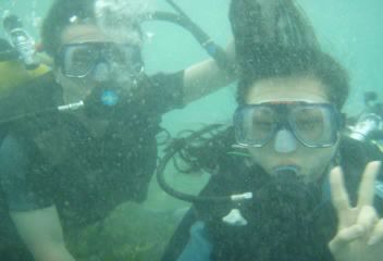 Vivian & Kevin's Honeymoon in Bali 2008-1-16 (3rd Day) 拉拉拉拉拉,没有太阳的巴厘,细雨飘飘的巴厘,鸟语花香的巴厘,偶们早早地起床迎接美好的第三天了,第三天计划的重头安排是:Water sport—Diving!爽死啦,豆豆又是一阵欢呼,看他那满脸高兴的样,还以为他潜水很专业的呢,其实和偶一样都是beginner啦,也不担心下万一下水后氧气不足咋办,这孩子,哎! 偶们住的RAMADA BENOA在NUSA DUA,潜水地点就在NUSA DUA 海滩,叫什么”BMR”的,管他呢,反正离偶们度假村很近,估计步行5—10分钟就到了。 一到那里,就闪出一个嘴巴很大的当地人,肥头肥脑的,一看就是那种势利眼型的。看见偶们的一刹那,两眼放光,笑得象朵花,用一口“流利”的英语狂介绍水上活动,8好意思,这两天,水偏多了些,谁叫偶家豆豆强烈要求呢,西西。于是,偶们故作镇定地看着价目表,我的老天啊,每个活动偶们都想玩,可是偶预估了一下budget,也就只能控制在3个活动左右,于是偶们很绅士地对“肥头大耳”报以极其温柔的微笑,告诉他先试试几个活动,如果觉得好玩会继续玩的,缓兵之计嘛,嘿嘿! 第一个项目:Jet ski,就是水上摩托艇,一个教练和你一起坐上摩托艇,在海上巡游5分钟,满爽的,尤其是自己开时,其实偶很紧张的,怕翻到海里去,后面那个教练一看我开得快了,就马上帮我控制住速度,偶想他也怕被偶甩到水里吧,满lose face滴;在海上飙艇时还和老公打了个招呼,他满high的,反正只要在水里他都是一副很爽的样子。5分钟很快就over了,2人一共$40就这样被骗了,555 第二个项目:Fly Fish,就是人象放风筝一样吊在空中飞,下面有充气垫呢,就象海里的飞鱼一样,这个偶个人觉得满刺激的,吓得偶惊声尖叫,飞了3个round才下来,下来后惊魂未定呢,好了,两个人一共$50又被骗走了; 第三个项目,也是最后一个项目,也是花钱最多的一个项目,也是最刺激的一个项目:diving。偶们先听了一个lecture,其实就是工作人员和偶们简单讲了下怎么使用氧气管,怎么呼吸,遇到危险怎么处理等等注意事项,偶米有潜过水,所以比较紧张,不停地问那个工作人员问题,后来老公还亲自示范给偶看,搞得他象教练一样,简短的5分钟讲座就说完了,然后一艘小船带着偶俩上路了(怎么感觉那么悲凉捏),那时突然下起了小雨,海面上凉风习习,好冷啊,到了巴厘,很难得叫冷的哦,可是那时候还真是有些阴冷,水里肯定很冷,妈妈呀,就我啊,可是此时已无路可逃,豆豆已经滚进海里了,留下安安(偶的昵称)一人孤苦的身影,被船上的一个大汉强行拽住,按到水中,偶们的潜水教练立马将氧气瓶背在偶身上,nnd,好重啊,想将偶沉河啊,不是,是沉海啦!么办法,交了$50沉海费了,自作孽吧,骨碌骨碌,安安也下去了…… 在海底,豆豆和安安又相会了!他们的爱情在海底延续了!!!哈哈哈!偶们估计潜下去6、7米了,海底真的好没哦,好多热带小鱼鱼,各种各样的颜色,偶们还给鱼鱼喂食呢,教练丢给偶们一小袋面包,袋子一弄破,大鱼小鱼就一起聚到偶们身边抢食,兴奋死偶了,害得偶差点吞了口海水,好好玩哦,很有意义的哦,两人共$100,满贵的,8过真的很值得,以至于偶们还买了价值$40的潜水DVD,专门为偶们设计的哦!西西,好想share 下哦,可惜ctrip上没有视频上传耶,555555 大家可以计算出偶们在水水sport上花了多少美元了吧,恐怖啊,偶都8想算了,留给大家算咯! 出了BMR Beach(Nusa Dua Beach),麻袋早已在门口等候偶们了,偶向他大呼:爽死了!爽死了!!他也一副很爽的样子,好象在说:“你爽偶也爽!”偶们换掉了湿漉漉的泳衣,穿上了干爽透气的yy又向别处出发啦。有很多同事和朋友问偶,怎么没有穿bikini的pp呢,很遗憾地告诉大家,就是米有,因为在水里玩时,谁还拿着个camara拍来拍去啊,感觉满巴的哦,so米有偶的sexy pp,大家节哀… 下一个目的地:TAMA AJUN TEMPLE 一个寺庙啦,麻袋说翻译出来就是:Beautiful Garden,美丽园?怎么感觉在上海也有一个同样名字地方呢?靠近在静安寺那里,8好意思,跑题了…里面的确很美丽,非常美丽,无比美丽,总之,叫美丽园,是叫对了,在此对其美丽的风景不再加以描述,各位有幸的话可以去下Bali自己看看,那里的一切对偶来说都是美丽的,允许偶小巴一下,偶米见过虾米世面滴,卡卡…对了,这些公园都要门票的,很便宜,偶和豆豆一共12元人民币,不知麻袋因为是导游还是当地人,so免费滴^_^ 其实,美丽园并不是偶关注的重点啦,偶在网站上听很多人说起过有名的Strawberry Stop,早就想去那里喝杯草莓汁啦,在看美丽圆的时候偶就8停提醒麻袋这个名字,麻袋说看过植物园后,在下山途中会经过草莓小站的,于是偶满脑子都是草莓在飘来飘去的,一会想象自己坐在草莓上飞,一会想象自己住在草莓屋里,又一会想象自己戴着草莓帽子,最后竟幻想自己穿着草莓鞋鞋(大家可以忽略掉偶关于草莓的幻想),反正偶强烈要求去植物园,因为下山可以吃草莓!!!这个理由充足发?! 偶们在去植物园(Botanical Garden)(RP13000) 的路上已经有星星点点的小雨了,说实话,坐在有冷气的车里还有点冷呢,偶很担心到了植物园,小雨就变哗啦哗啦的了。果不其然,到了植物园后,和一个怪兽雕象拍了几张pp后就开始下大了,偶们变冲进了园中的热带植物馆中躲雨,期待雨快快停,因为偶想步行观赏植物园,可是等了半个多小时都没有一点希望,而且非但没有一点希望,雨还越下越大,nnd, 偶们只有在热带植物馆里和那些很少见的热带植物疯狂合影了。这个馆顶部和四周全是玻