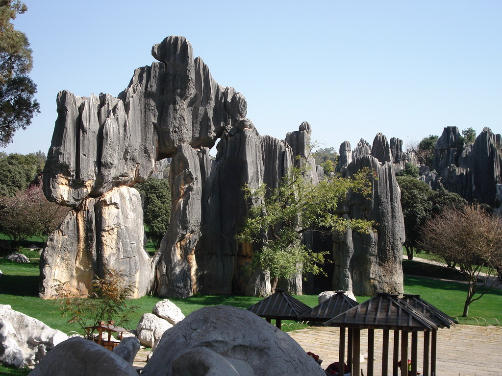 时间: 线路:武汉→昆明→西双版纳→丽江→大理→滕冲→芒市→昆明→武汉 十五天的云南之旅终于结束了!从计划、准备到旅游结束的整个过程充满了快乐,同时也有不愉快.现在回味起来也是别有一番滋味! 12/22:乘南航CZ3423晚上10点到达云南.旅行社的人已经在接机处等我们了,我们随司机师傅先到旅行社交钱签合同后入住云煤宾馆. 12/23:早上8点在宾馆用完早餐后在大厅等旅行社来接我们.约好是8点钟,结果8点20导游才到,是一个大约三十多岁的女的.长的黑黑的.由于我们当天晚上就要飞版纳所以就把行李带上旅游车,跟着那女导游走出宾馆发现旅游车停在对面,于是导游带着我们三个集体翻栏杆上了车,向石林进发了.一路上又接了不少游客一般都是夫妻要不就是情侣,倒是看见了一个奇怪的组合,一对年级大的夫妇带着他们的外孙女旅游,那小女孩一口稚嫩的童音听起来蛮可爱,接我们的女导游姓金,是水又族的(也就是汉族,他们云南人都是这么介绍自己)她跟我们介绍了云南少数民族的风俗习惯,比如去了石林,女的要叫阿诗玛,男的要叫阿黑哥,还有怎么根据阿诗玛帽子上面的角来判断她是未婚还是已婚是已经订婚还是没订婚.一路上有说有笑我们在车上沿路欣赏窗外的风景,12点到达了第一个景点国家AA级风景区岩泉风景区,里面有个岩泉禅寺供奉了几位菩萨佛祖,依山而建寺门口有一尊很大的弥勒佛像,甚是壮观!参观完寺庙后我们上车继续向石林进发,12点50我们终于到达了石林.在附近的餐厅用完午饭就随一个胖胖的阿诗玛进入石林景区了,上了游览车,发现游客并不多,心里暗暗得意这个时间来旅游真好,避开了旺季,价格也便宜!我们先游览了大石林,正如在车上导游说的石林里面除了石头还是石头,各种各样奇形怪状的石头,在这里可以充分发挥你的想象力. 据说西游记里面的三打白骨精就是在大石林拍摄的.游览完大石林我们上车继续去参观小石林, 里面和大石林不同石头普遍要矮小些但是分布的区域很大,一片片的,比较有名的那块像阿诗玛的石头也在小石林,跟大石林比起来又是另外一种景致.3点的时候我们离开了石林.(在这里要告诉大家最好还是坐游览车游览,整个石林的景区实在太大了,要单靠走路实在很累)返程去了七彩云南,里面其实也就是一个购物点,只不过修建的比较好,我们进去免费品尝了普洱茶,也了解到一点点普洱茶的常识.不过感觉在这种购物点买茶比较贵我们三个还是决定去昆明的大超市买.休息了一会上车晚上7点终于返回了昆明. 在机场附近有家很有名的米线馆叫桥香园,我们在里面美美的吃上一顿,然后直接去了机场,晚上十一点我们上了飞机,十二点到达西双版纳. (朋友作品)