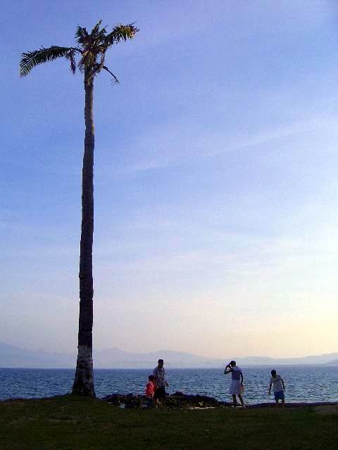 苏碧弯原来是美军驻太平洋的海军基地,现在变成了旅游度假的胜地,我们从马里拉坐了三个小时汽车来到苏碧弯,在车上游览了基地,遥看首脑村,并在那里拍照留念,最后到原来美军停靠军舰的港湾看。以前美军的小应号航空母舰就停靠在这(那里靠近渡船码头,除了一些货船,我们没看到能吸引我们眼球的东西,而我们为了到这开开眼界,却每人上缴人民币200元,评价两个字:不值! 下午我们坐了20分钟的渡船来到格兰岛,岛上有许多百年老树,要两个人张开双臂才能环抱,我们住的房子正对大海,有了这些老树作正,说明地震和海啸都不会在这里发生,我们可以放心享受这里的阳光和海滩了。 躺在露台的摇椅上,一边啃着巧克力,一边看书,听着海浪有节奏地拍打着岸边的岩石,海风轻柔地吹拂着的,自然中的交响曲,好惬意呀。你会忘记工作的压力,生活的烦恼。心一下子舒坦起来,变得广阔,像大海,这里面包容了多少的欢乐和烦恼。朋友读中学的女儿对我说,“我能一辈子住这里就好了。” 我们在岛上吃了两顿饭,都只是炸鸡翼和香肠,还有一点小白菜,来到海边而不能打开肚皮吃顿海鲜,那是我们广东人的一个遗憾,不能好好地吃一顿,那就好好地玩一顿吧,孩子们最喜欢的是香蕉船,200P坐一次,船里岸边好几米就全部跳到水里,相互戏水,嬉闹,然后戴上浮潜的眼镜,看着在水中游弋的小鱼儿,海水清澈透底,在阳光下更能一览无余。除了小鱼儿,我们只能看到沙子和石子,不时有只小水母咧咧妞妞地游了过来,说到浮潜,到巴哩岛是比较理想,那里不但能看到五彩斑斓的热带鱼,还看到色彩鲜艳的巨型珊瑚,真叫人目不暇给,你会给那么美的景色所震住。 格兰岛的空气很好,岛上的树林茂密,百年的老树身上还长出各种兰花,可惜我来到岛上还没有二十四个小时就要回去了,没有环岛去看过究竟也是一个遗憾,渡船已经停靠在码头,我们的行李都搬到船上,这时发现儿子和友人的儿子都不见了,我焦急地在码头等候,老公和友人坐上电瓶车到处找。直到渡船鸣起长长的笛声才看到他俩急匆匆地跑回来,他俩说:“我们又跑到昨晚住的地方,坐上摇椅,再来感受岛上的空气和阳光,在那听听海浪声,怎么时间就过的那么快。” 本来是“乘兴而来,兴尽而返。”看来孩子们还没尽兴,我们都不好责怪这两个孩子,马上跑到船上,船也开始摇动起来,它载着我们,也载着我们的快乐,载着我们依依不舍的心情,离开了格兰岛。