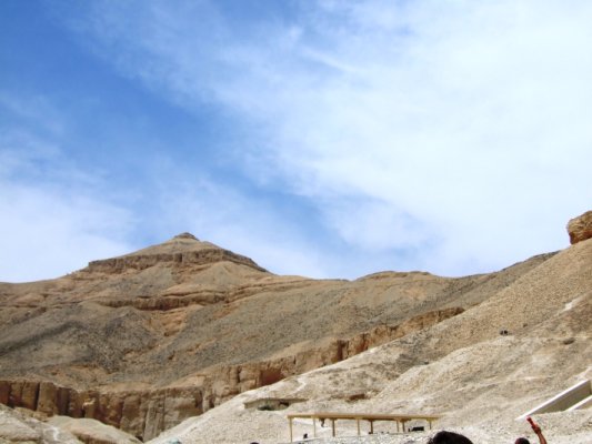 离开卡纳尔克,驱车40分钟左右来到了帝王谷。 帝王谷,众多陵墓,分布在一条开阔的山谷中。山谷的正前方,即谷底的尽头,就是高耸的底比斯山的主峰,它本身就像一座巨大的天然金字塔,其顶端部分极似珠穆朗玛的主峰——在一层不高的垂直壁上有一座金字塔形的峰顶。荒凉的山岭,寸草不生;裸露的山体,因风化与开掘,已成为破碎凌乱的碎石,只有山体的上部还保留着陡峭的岩体。 这里曾经是65位法老的陵墓,在1922年之前,有64座都已经被盗。唯一幸存的是少年国王图坦卡蒙那座不起眼的陵墓,它面积小并且建在拉美西斯六世陵墓的下方。少年国王只在位9年,在他19岁时意外死亡。这个在众多声名显赫的法老中几乎被世人遗忘的少年法老,却因他保存完好的陵墓被发掘而比其他任何一个法老都受到现今世人的关注。 我们只参观了拉美西斯三世和四世的陵墓,图坦卡蒙陵墓的开放时间要从下午两点才开始,没有时间等待,只好放弃了。关于帝王谷的故事还有很多很多....