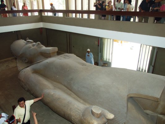 5.6 孟菲斯 萨卡拉 & 哈里里--告别埃及 从开罗到孟菲斯只有20多公里。孟菲斯,从公元前3100年前起就是埃及最古老的首都,定都且长达800年之久。据传于公元前三千年为法老米那(美尼斯)所建,名“白城”,后改称孟菲斯。 曾作为古王国(公元前二十七至前二十二世纪)的都城。公元前二千年代为底比斯所取代,但仍为埃及宗教、文化名城。公元七世纪被毁。当时是全世界最壮丽伟大的都市,现在只留下一个迷你博物馆及花园中残破的石雕供人凭吊。但是这里有一尊巨型的拉美西斯二世残破的雕像,因为雕像是腿部损坏,使整个雕像无法站立,所以他只能静静地躺在那里,即便是躺着,他仍是个令人敬仰的巨人。