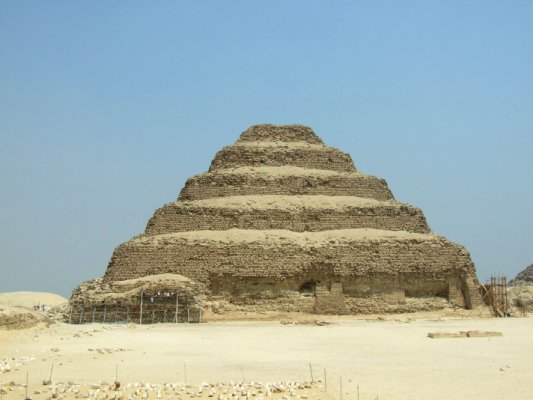 下午,我们继续驱车前往附近的萨卡拉,那里有世界上最古老的金字塔--阶梯金字塔。 它是埃及金字塔的雏形。这里其实是由多个金字塔和庙宇组成的建筑群,阶梯金字塔是其中最有名、保存相对最好的一个。 阶梯金字塔的主人,是古埃及第三王朝国王左塞尔,约建于公元前2700年,比胡夫金字塔要早100年左右,是埃及最早的金字塔,也是世界上最早用石块修建的陵墓。 当时负责设计的是宰相伊姆霍泰普,他甚至比左塞尔王还有名。这位宰相先让工人在地面上修建基座,然后,将石头切割成块状,在原来的坟墓小土墩基础上一层层加高,并以石灰岩装饰外表。最后一共堆了六层,呈阶梯塔状。主墓室则深入地底,里面躺着左塞尔王和他的五位家庭成员。 阶梯金字塔周围还留有享庙和神殿的遗迹,远处则能望到大名鼎鼎的胡夫金字塔。