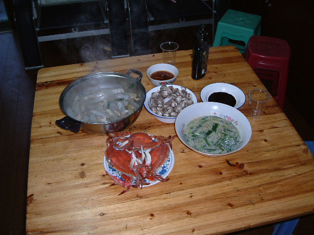 我和GF都是海鲜粉丝,一周前突然心血来潮要出去吃,结果翻遍了携程目的地指南,最终敲定了我们都没去过的嵊泗。 因为工作忙,出发前拼命赶时间做了两晚的功课。。。终于完成了三页A4的预习报告。。。可是实际行程和过往驴友们的笔记还是有很大出入。下面就把我们的行程欢乐和经验与大家分享一下。 买的是5月8日早上的8点的票子,南浦大桥旅游集散中心的,是大巴—快艇陆海联运的哎(芦潮港的只有周六周日才有,大家别指望拉)。98元/位,百度查一下也能找到。我们的船晚点了一些,不过中午12点也就到嵊泗的李柱山码头了(嵊泗与外界往来的码头)。坐4块钱的中巴可以到菜园镇中心,这也就是嵊泗的县中心了。强烈强烈建议大家吃住都在镇中心解决,千万别住什么风景区的宾馆。下面详细讲解。 到了镇中心,我们一路闲逛,海鲜餐厅走过好多家,因为听说这里有很多宰人的黑点,所以找了一家看上去很大气很正派的饭店,就在县少年宫隔壁,看上去是专门做对面海事局生意的,东西肯定新鲜,也不敢乱宰人。老板娘满殷勤,价格也公道,我们的处女宴就送给这老板娘了,150左右,忘记了精确数字了,包括两只籽蟹、野生花蛤炖蛋、两盘毛蚶、濑尿虾一盘以及舟山黄酒一瓶。 吃完饭后去了六井潭,从镇中心出发就是好,去哪里打车都有明码标价的。45块单程。六井潭的风景不错的,特别还有个地下防空洞的长长的隧道,很有特色,喜欢探险的一定要去,记得带手电。至于来回90块的打车费值不值见仁见智吧。 六井潭回菜园镇的路上可以顺道去渔家乐打鱼。不过说打鱼其实是看渔民打鱼,我们可没机会上手,而且被忽悠的成分居多,权当一次出海捕鱼的经历吧,别指望收获什么,也别指望有什么特别的兴奋。150块/船。 前面说的为什么农民家旅馆尽量别住呢,倒也不是我们太刁,渔家乐所在的五龙乡的小旅馆我们去看了,结果很失望:房间还算干净,就是整个环境很冷清很萧瑟,不晓得晚上除了xxx以外还能干什么。。。那个床单太民俗了。。。有点不能接受,还有那个门缝,,,竟然可以用来偷窥的,,,直接被GF枪毙了。 傍晚回到菜园镇已经5点多了,找宾馆,,,第一家竟然就让我感觉很好。100块一晚的标间,背离马路,没有车流人流的声音(不过晚上楼上楼下还是有点打牌和吵闹声的)。总的来说不错,酒店设施比较新,关键是酒店老板娘特别好客,免费借厨房和油盐酱醋给我们自助做海鲜全宴。顺便提一下,她有三个孩子哎,都特别地kawayi哦。。。我们自己做的菜哦,葱姜蒸膏蟹、生鲜烫血蚶、水煮超级大蛏子、鲜滑炒泥螺,外加舟山特酿黄酒,有个词叫on top of the world,我们当时的感觉就是那样。 第二天听说因为九级大风海上往来的船只全部停航。。。OMG我们成了周末在这里度假的仅有的几个上海人之一。真是便宜了我们了,旺季等于淡季,便宜的住宿便宜的海鲜。。。。。。不过也有不幸的,一天没有好好出去玩,只好逛街逛菜场在房间打牌喝酒睡大觉。。。晚上风小了,去了基湖沙滩,伸手不见五指,感觉还是老灵的。但是没有驴友说的挖到一大桶小螃蟹的快感,小铲子白带了。 最后一天准备回家咯,早上去了最后一个憧憬的地方——南长途沙滩。这里是很荒凉,喜欢这里的话说明你够腔调。不过我们呆了20分钟就走了,天实在还比较冷,风也比较大,太阳又没出来,实在没有太多玩水的兴致,更别说躺着晒太阳了。回家前别的都不想带了,买了3斤毛蚶,回家来慢慢回味享用咯。