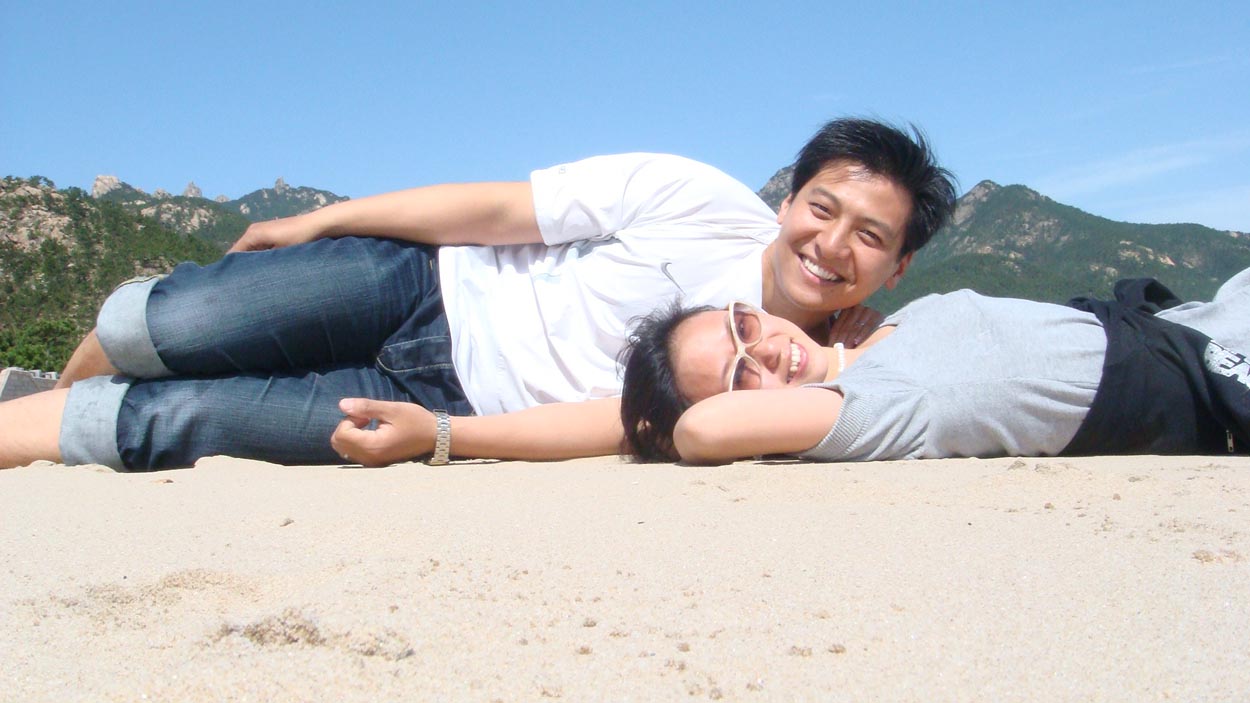 忍不住,和老公双双脱了鞋袜,打算下海了,说心里话,海水还是满冷的,并没有冷掉我们的心