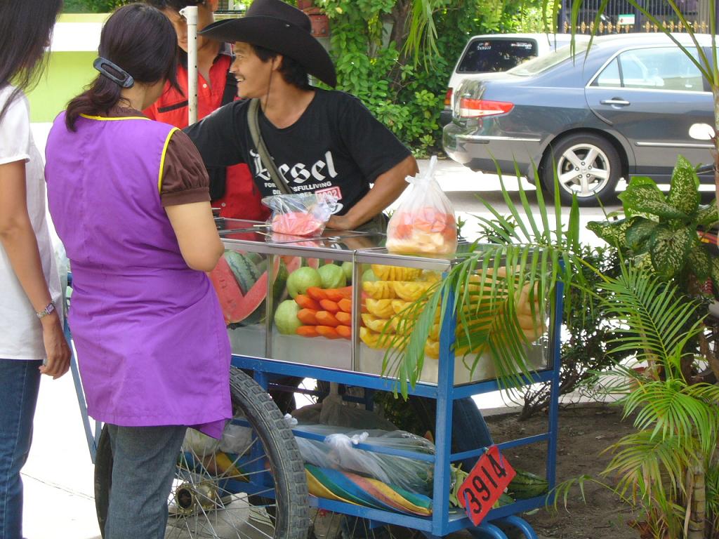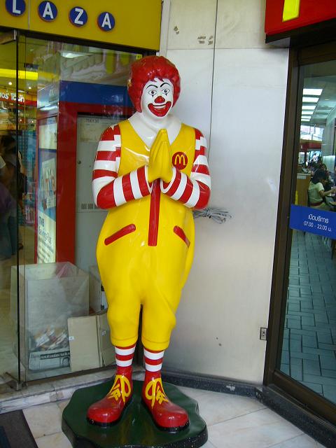 2008年5月1日下午,从新加坡樟宜机场出发去泰国。走之前去新建好的3号搭客大厦看了一下。 坐JetStar Asia的飞机去的曼谷,晚上8点多到的。捷星的飞机都是皮的座椅,而且挺冷的。出关之前去办了落地签证,很方便。以前看别人写有免费的电话卡,现在已经没有了,要出关以后买,也挺便宜的。 出关之后不是很饿,就准备直接去定的酒店。酒店是在网上订的,700Bah一夜,包早餐。酒店网站是http://www.sawasdee-hotels.com。在网上订回比较便宜一些。出了大厅,坐免费的shuttle bus去transport terminal,大概坐了2分钟。曼谷的司机车开的很快,而且贴得很近。 大家如果做公车的话,要准备好有泰文的地图,否则都不知道要在那里下,买多少钱的票。车票是上车后买。我们从transport terminal坐的552去on nut站下,一个人32Bah。车大概开了一个小时。可以去这个网站看机场的介绍www.bangkokairportonline.com。还好遇到一个会说英文的泰国人,才知道到哪里下。也可以叫售票员叫你下车,都很友好。机场的express bus要150Bah一个人,挺贵的,人多的话打车比较便宜。接着从on nut坐BTS到Thong Lor下。走了几分钟就到了我们的酒店,离地铁站很近。乘BTS或者MRT都很方便,如果没有硬币的话要去服务台换硬币,然后在自动售票机买。酒店在一个小巷子尾,附近有很多日本餐厅,夜店。到了晚上有很多车停在路边。酒店工作人员很热情,服务很好。我们的房间是106,有独立卫生间,电视,空调。因为是standard double,没有窗户,不过也无所谓,性价比不错。我们发现卫生间里没有纸,他们的服务生马上给我们拿来了。酒店里还有提供避孕套,当然是要钱的。稍做休息后,在酒店周围逛了一下。进去一家小饭店吃了点东西,花了180Bah.东西既不好吃,还很贵。只吃了一个炒猪肉,一盘炒饭,一碗白饭和一瓶水。然后在附近逛了逛,买了些吃的和水果。糯米饭配芒果,有一个吃的不知道名字,太甜了。 5月2号很早就起来了,因为要去大皇宫,要早些去。去楼下吃了早餐,有几个set可以选。吃的面包片,两个煎蛋,香肠,茶。然后出去做BST,昨天晚上冷清的小巷变成了早市,有卖肉的,卖菜的,卖小吃的。买了一个烤香蕉,还是第一次看到。坐BST到saphan taksin下,然后在那边的码头坐船,有15和20bah两种。在码头卖票也行,上了船再买票也行。反正有查票的,票要留好。到N9下,走过小市场,马路对面就是大皇宫。要沿着围墙向左走。我们开始没有过马路,向右走,有很多卖2手的东西的。比夜市和周末市场卖的便宜。还好没有遇到那些拉客的。走进大门会看到售票处,一个人250bah,包括大皇宫的门票,还有一个钱币纪念馆的票。钱币纪念馆就在卖门票的旁边,可以在没进大皇宫的时候看。进去大皇宫,就随便走走了。再去玉佛室看看。出了大皇宫,沿原路回去,向相反的方向走,先会经过一个市场,这个市场是通向N8码头的。再往前走,就会看到卧佛寺。进去就看看卧佛,很大,150bah一个人。出来之后本来要打车去唐人街,不过可能太近了,出租车都不打表去,要价150bah,去他妈的,自己坐船去了。那边很多批发东西的。喝了刚榨的桔子汁和柚子汁,太好喝了。桔子汁大瓶30bah,柚子汁120bah.由于晚上要去看人要表演,没怎么在唐人街逛就走了。晚上去asia hotel看的人妖表演。由于之前在网上订的票,比较便宜,850bah一个人。去那边现买要1200bah一个人。可以去http://www.asiahotel.th1.org/asia-hotel-bangkok/entertainments.html 去订票,这个网站是850bah一个人,不过缺点是不知道座位,定完他们会发邮件来确认,然后网上支付。还有一个网站http://www.calypsocabaret.com/reserve1.php,900bah一个人,贵一点不过他们先告诉你位置,你觉得不错再去付钱,座位图也可以在这个网站找到。在asia hotel附近吃了烤虾,烤鱿鱼,拌青木瓜,还有啤酒,糯米饭。路边摊很便宜,就是语言不通。还好遇到一个会说英语的泰国人,她帮我们叫的菜。这附近买的东西也便宜,比什么周末市场便宜多了。 5月3日去的chuck chuck周末市场,很大,认很多,太热了。喝了一杯草汁,甜甜的,不知道名字。还有烤活的大头虾,150bah 6,7只。很好吃。逛完之后在路边吃了酸辣米粉,30bah一个人,一盘米粉,有鸡蛋,鱼丸,生的菜随便吃,感觉像只羊。有生的绿豆芽,包菜,黄瓜,和两个不认识的菜。然后本来要去考山路的,坐BST到victory monument,没找到汽车,就在那附近逛了逛,在一个购物商场里理了个发。语言不通没关系,看图就好了。晚上去了卷心菜和保险套餐厅吃饭,环境很特别,不过菜只是中看不中吃,不便宜,如果坐在外边蚊子也特别多。吃完饭在里面做了个脚底按摩。 5月4日坐早上的飞机回新加坡,打车去的机场,从Thong Lor过去两个人181bah,比坐机场大巴便宜,那个要300bah两个人。