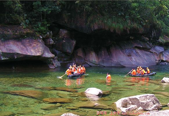去武夷山前,似乎少去了以往的激动,一直考虑着是否要加大力度去个三亚什么的。直到那天以为钱包被偷,挂失了所有的卡,身份证没有了,不可去的地方太多了。咬牙在携程上订了武夷山的茶宛酒店,尘埃落定没有了可变的因素,专一起武夷山的安排,又找到了兴奋点。 我一直就喜欢这种随心所欲,可能其他的几位本想同去的朋友都急坏了,房间未定、车票未买、行程还在天上飞……28号去买的火车票,30号的是别想了,好再买到了1号的。 运气真不错呢?我行程里的首选车次被我买到了。K197,1号18:27发车,应该可以在家吃好晚饭再出门的,一觉睡到武夷山。我喜欢携程网上订东西,因为服务还不错,宾馆价格没有比平时高多少,而且还有接站服务。 那家宾馆的服务比评价的要好些。凌晨4点到那,因为没有空房了,前台小姐安排我们在商务部休息,其实我们在火车上休息的很好,在商务部接通了网络拿来着本本网游戏了。我在一边用PSP看电影,PSP对于我来说更象移动硬盘,平时在家休息只有这时有用武之地。 天渐亮,六点多时空出一间房安顿。九曲溪漂流需要预订,在宾馆预订了第二天的票。用过早餐,热心的小姐居然为我们找了二位北京帅哥拼车同行,四个人用车当然比二个人合算多了,真难为她的热心了。事实证明这二帅哥人真不错,如果此行没有他们,要少去很多乐趣呢。 刚开始,大家比较陌生自然有些拘谨。包车去自然保护区150元一天,他们谈的价,好省心的。我拿出攻略大家传阅。发现一个问题,这个包车的价格比网上说的便宜多了。网上写的要300一天呢。但再细看,明白了其中的原因。司机只带我们去自然保护区的青龙瀑布一带,黄冈山是不去的。不去黄冈,心里万般不爽,我们私下商量了一下,都更愿意加钱去黄冈。 司机很上路,说出自己没有通行证不能去,如果我们要去可帮忙找其他车或我们自行找,他不收我们已开的车钱。看看到恳切的态度,并且可能真如他说去黄冈时间上已经来不及了,只能做罢。(遗憾啊,如果今后还有机会,一定一定要去黄冈) 这里每个司机家里似乎都是茶农,一路上他介绍着武夷山的茶叶。其实喝过三得利后我对乌龙茶没有什么好感,而且前次去婺源已经买了很多了,今年都不打算买茶叶。 我们第一个玩的是桐木溪漂流也称“华东第一漂”,橡皮艇漂流。考虑到当前不是雨季,我忽略掉了网上说的要带一套衣裤,只多带了一件上衣。 下水时司机再次“危言耸听”,于是很不情愿的把手机、相机统统交公,但还是带了个钱包,一家一当都在这里呢,我可不想把钱包也放在车上,反正大不了我就晒钱罢了。 漂流前面40分钟还曾一度后悔暗骂司机夸张了,不带相机,错过了多少好风景啊!但后面随着水位落差的越来越大,开始庆幸了。攻略中写的“水流湍急,险石挡道,上下颠簸,最高落差2.8米。有四、五个落差极大的地方,全程都要紧抓皮艇,惊险不断,乐趣无穷,游武夷山年轻人必去之处。”一点都不夸张。 最后一个落差真有2.8米之大,二位撑皮艇的船大让我们坐在船内,让重心下向,防止翻船和被周围的礁石划伤,船底有很多积水,我戏称他在强迫我们洗盆浴,陈在一边打趣说,大家不可以嘘嘘哦。大家哄笑,似乎不是那么怕怕了。 最后那一冲,船上的另五位吓得退缩了,只有我不怕死自高奋勇的坐在最前,往下冲看那很大的落差,刺激的全船的人尖叫!嘭的船落下,飞溅起的大片水浪盖着脑袋下来,呵呵,淋浴啊,好爽快!当小船渐渐控制的平缓下来,我们的坐在船内的水位已经过腰了…… 我可怜的放在裤裤口袋里的钱包啊,已经完全浸泡在水里了~~~ 上岸后我第一件事就是拿来出钱包晒钱,风很大,不敢放在岩石上。无数的男男女女被我的动作逗乐了,都说很经典的一阵狂拍。哼哼哼,要收版权的哦。 其实也不单单是在晒钱啦,还要晒屁屁,虽然全身都湿了,可以的话希望先干了屁屁,坐在车里不难受。北京二帅哥戏说,大家一起趴着晒屁屁,晒得红红的,跑到十八寨(下面的一个景点)和那里的猴子攀亲。 中餐是司机带我们在景点用的,本来北京二帅哥是想随便吃些什么干粮,不过司机一再保证什么物美价廉。反正我是无所谓的,吃也好不吃也好,什么事那二北京帅哥都可以拿主意。他们商量下来,还是吃饭吧。5菜1汤:土鸡堡、笋丝炒肉(肉很少的,不过笋很好吃)、小溪鱼(味道老好的)、木耳炒什么当地的菜、一盘野菜、海带骨头汤(骨头很少的),共128元。我在景点吃过饭的,这个价格和他们上菜的量以及那个饭店的装修等等相比下来真的算便宜。 中餐结束,去一个非常漂亮的地方看瀑布,再次感叹不虚此行!写这种小学生游记写得我累死了,明天有空接着再写吧。