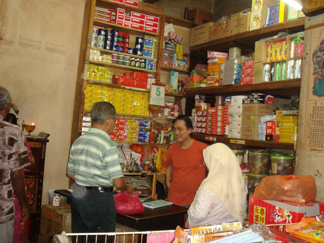 继续驱车约一小时,就到了蔴坡县城,城区不大,也不繁华。再行10分钟就到了我表姐的家相对的长排房子,结构相同。大门外种着大叶的热带果树,结着许多绿色的大果子。屋子前面有小花园及停车位,一层平房约占地 客厅颇大,按中国的传统厅内正面有供桌,围着金玉满堂的绣纬。有福、禄、寿三星。供奉着各色水果。整套住房经过扩建和改建共有三间卧室,两个卫生间,和一个连厨房的大饭厅,以适合有众多子孙回家时使用。饭厅的墙上挂着子女们的毕业照和结婚照。饭厅内堆放了许多过节用的水果和饮料。出厨房再向后,主人又搭了一个棚,放了一些生产、生活用具。有原来用于压制橡胶片改成的压面机,再往后出围墙是通向小山坡的一小块空地(这是公家的土地),也被充分的利用了起来,种了一丘番薯叶和青菜。养了许多家禽,有鸡、鸭、火鸡、兔。还有一群吱吱叫着的毛茸茸的雏鸡。Leo看着很新鲜,高兴极了。房屋整个布局充分体现了主人的勤劳及节俭。 晚饭去附近的一个小街吃,口味不太习惯,Leo吃了一个五香包。饭后隆开车到蔴坡的入海口附近玩了一下。蔴河桥上的霓虹灯布置成彩虹状,河边的一处休闲场地上,有小贩车卖水果和小吃,隆买了两盒拌着虾酱的青瓜豆干,每盒5元马币。说是小时候家里穷,爱吃,那时,虽然只要5毛钱,却还买不起。但是我们却因口味不适应,不敢吃。二老买一包煮花生,粒大似是北方花生,可味道差多了。广场很暗,Leo到儿童游戏设施上玩了一会儿。回到家已经很迟了,看到客厅里有蚊子。睡觉时房间里倒没有感觉到。赤脚去卫生间实在很不习惯。 Leo今天起的早,榔姐已经煮好了自己压制的面条和煎鸡蛋,梅从蔴坡买来用蕉叶包住烤的鱼肉,颇合我们的口味,Leo也说好吃。 通来电问何时到他家(当时他正在峇里),以便接我们。9点多隆开车,榔姐夫带路去昔加免。他还带着自己打的面条,顺路带给亲戚。亲戚是30多岁的两夫妻,在公路边开一个小杂货店,门口堆着许多永春芦柑,生意不错,顾客多为马来人。老板娘说,永春芦柑比较好吃。