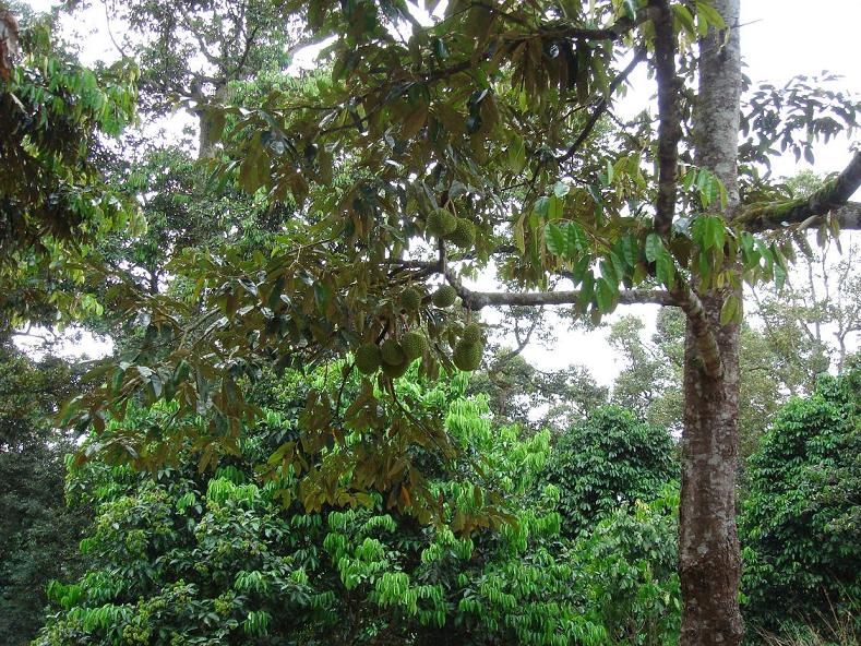 公路的右侧是从吉隆坡到昔加免的火车路(该地位于马国的中心部,海拔较高,但是四面交通很方便)。中途经过相当长的一段油棕林和橡胶林,人烟稀少。油棕树的经济效益比橡胶树好,而且无需很大的管理。一棵树可以收成30-35年,一个人一辈子种两棵就可以了,所以现在大力发展油棕树。但是当时该树是作为景观树引种的,没想到成了经济支柱产业。棕油主要销往中国,用来做方便面。所以马国人希望中国人多吃一些方便面。那么棕油就不怕没有销路了! 约一小时后,到了路边的一个小村落,马国人称之为新村,因为当年马国政府为了与马来西亚共产党领导的游击队作战,把散住在山里的华人,集中搬到路边另建新村居住,以防他们给马共游击队提供粮食和武器。(当年毛泽东领导的中国共产党搞革命输出,支持东南亚的共产党搞武装斗争,马共的领导人是华人,华人成为嫌疑对象)。据说这一措施很有效,马国政府成为东南亚唯一战胜游击队的政府。 正对路口中央,有一颗树荫甚密的大树,树下停着一辆卖水果、饮料等休闲小食的机动三轮车,炮正在卖货。看见我们十分高兴,拿出木瓜分给我们吃。女儿说很甜,好吃。大家一起照相,Leo始终玩弄着喜爱的小木枪,照相时也不放下。炮就给了他一扎橡皮圈做子弹。木枪本来只有五根橡皮圈,这下增加了一、二十根,Leo可高兴了! 炮立即收档,带路回家。住房是一整排相连的二层建筑,像路边的店铺一样,每户一格,宽约 然后我们一起去通家,很近就在马路对面,房屋结构相似,只是重新装修过,比较明亮。门口有结着果实的番石榴、红毛丹等果树。通和弟弟祥的房子紧紧相连,门口的小院仅隔一矮墙,小孩可轻易爬来爬去。祥夫妻都来过泉州,两个女儿带着三个外孙在玩耍。他们给Leo红包,我也给他们三个红包。祥还拿了许多香蕉和零食给Leo。值得一提的是,我们从来没吃过这种香蕉,口味类似“皇帝蕉”,个头却有普通香蕉那么大。起初我们还担心吃不了兜着走会很快变坏,后来经过几天的旅途颠簸和挤压都还是那么爽甜。 通的客厅比炮家明亮,他带我们上楼参观,比较低矮,热但有空调。通一再请我们住下,他会去帮我们搬行李。榔姐夫说还是住蔴坡比较好。我取出带来的茶叶、紫菜、鱿鱼干和6瓶钙片给炮去分。通非常热情,他的子女都在吉隆坡从事室内装修等工作。妻子已过世,他一个人在种植果树。后来三兄弟、祥妻和我们一起去街上的印度餐厅吃咖哩鸡饭。路上碰到通的女儿从吉隆坡开车回来过年,她曾经到过泉州。Leo说咖喱饭有一点点辣,还能吃。午饭时,炮还一再说起在泉州时,我们叫了那么多的菜招待他们。饭后,通带路去他经营的山峇。路上经过炮的儿子满开的汽车空调维修店,满正在忙活。车子开了很久,经过许多油棕林和橡胶林。路越来越小,越来越偏僻,最终来到一个山峇。几乎是半个小山坡上,种着高大的榴莲、红毛丹等果树。地上落叶很厚,还一些掉落下来的未成熟的绿色榴莲。树林中有一小屋,有自来水、电冰箱,床和生活用具。通有时候要在山上过夜。他从冰箱内拿出三头剥去皮的松鼠送给我们,这是他知道我们今天要来,昨天晚上特地来安装鼠笼抓到的。山上有很多白纹伊蚊,Leo尽管涂了驱蚊油,还是被叮了几次,不敢久留,拍了一些照片便匆匆下山。Leo看到那么多新鲜的东西,很高兴! 通说我们现在来,不是榴莲成熟的季节,即使有几个,也不好吃。或者是从泰国运来的,同样不好吃。我们觉得奇怪,因为无论在香港或者大陆都是卖泰国的榴莲,而且以泰国的金枕头榴莲为佳品,怎么会不好呢。他为我们释疑,原来马来西亚的榴莲树很高大,所产的榴莲都是等果实成熟后,自然坠落到地上。果农收集起来,才拿去卖。所以果肉气味浓郁、很是香甜。尤以略带苦味的为佳。但是就无法运往较远的其他国家去卖,只能就近销售,较远的国家就品尝不到马来西亚的榴莲了(甚至不知道马来西亚也盛产榴莲)。榴莲基本上一年收成两次。但现今因为气候暖化,个别的树出现花期紊乱,所以在非产季,也会有很少量的榴莲结果,但是不好吃。而泰国的榴莲树低矮,果农可以不等榴莲完全成熟,就采摘下来,喷上防腐剂,就能运到很远的地方去卖。正当我们为没能品尝到马国榴莲的美味而倍感遗憾时,通说等到他的榴莲成熟时,会打电话邀请我们再去。到时候可以尽情地品尝个够!
