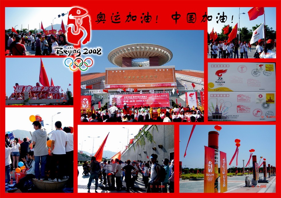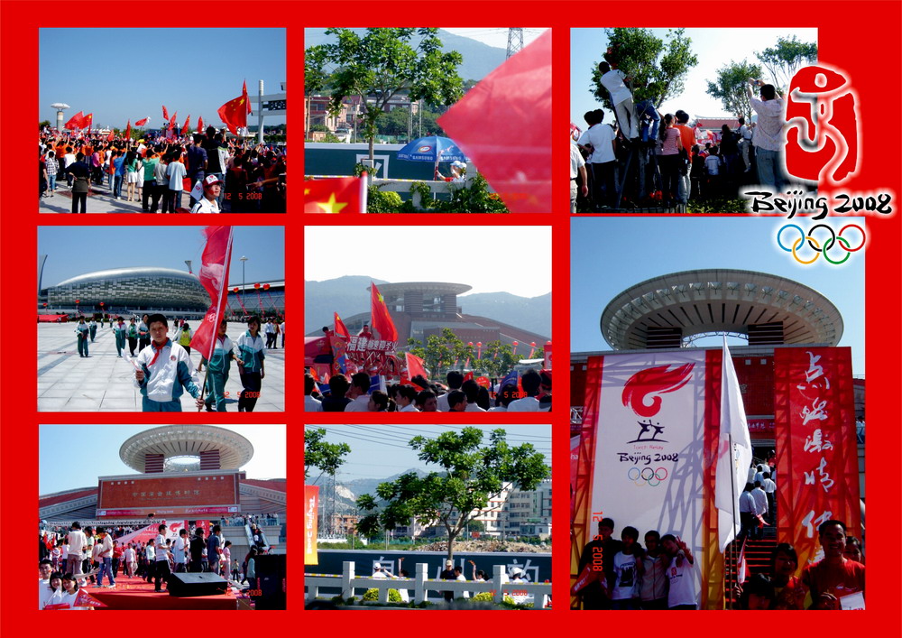【题记】 同一个世界,同一个梦想! “五一”节从长泰漂流回到泉州的时候,又是“摸黑”的晚上。让老“领导”打车先走,我们步行回家。路遇一三轮车夫,热情吆喝。上得车来,有如“北京的哥”好聊,竟讲起了奥运圣火“祥云”将在12日到达泉州。我才知道,泉州这中小城市也轮到了火炬传递,看来是晋江鞋都及体育品牌“劳苦功高”的缘故吧。车夫又说,主要是跟十月份第六届全国“农运会”在泉州举办有关——我怎么把这茬给忘了呢? 从那天起,我开始关注起了奥运火炬传递的点点滴滴。之前的消息还是有保密级别的,后来探明路线,提前两天全程“踩点”式地骑行了一番。功夫不负有心人,11日下午巧遇了众多的火炬手在热身,总算提前感受到“奥运来了”的浓烈气氛。 一、杞人爱忧天,黄梁“火腿”梦 我家“领导”曾不止一次“恨钢不成铁”地婉惜道,像这样百年不遇的盛事,你咋不早点报名参加选拔呢?她说的是当泉州奥运火炬手的事,正如当年小崔发起“重走长征路”的活动报名一样,我总是“先知后觉”。这跟俺曾是个“脑盲”无关,事实上我也从不相信如“中彩票”式的“幸运”会落在咱平头百姓身上。 果不其然,报纸上公布的一百单八将,全不是泛泛之辈,况且泉州这“小城大市”透明度本身就没有那么明朗。但是,不管是谁不都代表着广大的人民群众嘛?奥运圣火这次能从家门口经过,高兴都来不及啦,哪有那闲功夫像美国民主党般拚个“你死我活”。退而求其次,当个志愿者什么的工作人员,不也一样感同身受吗?一打听,原来没想像的如此简单。听说连诸如助威、表演的群众,都要经过“政审”般筛选。既然门槛众多,“报国无门”,咱只好使起了“歪门邪道”来。但是,却要付出“自由”的代价,当起了维持队伍秩序的第三梯队“便衣”。 因此,凡是有人问起当火炬手之事,我总是充满自豪地答曰:第109名是也。其实也是当之无愧的,特别是在“踩点”的时候,看到一些“富态庸容”,步履蹒跚的火炬手时,总是使我感叹不已。让人更加感慨的是,在模拟热身的那天下午,居然还有穿着裙子、高跟鞋迈着“猫步”的“火腿”。后来当我遇到了一群阳光灿烂的火炬手们,才对泉州的“形象代言人”们的担心,有所缓解。 他们告诉我,火炬第一棒是泉州的体委主任,第二棒是“特步”总裁,第107棒是“安踏”老板,至少还有三棒是晋江商人独享的,另外还有诸如行政街道、公安干警、体育名人等各界精英……,看来光分配这名额就够人头大的。 打住吧,再说下去就该有“吃葡萄不吐葡萄皮,不吃葡萄倒吐葡萄皮”之嫌啦。 二、准备好了吗?时刻准备着! 第一时间知道了路线图,马上牵来宝骑,约上阿飞探路去也。阿飞戏曰:政府又不发钱给咱们,您操哪门子心呀!不去,不去! 据可靠消息透露:五月十二日的火炬传递,起点是位于新华北路末端的中国闽台缘博物馆广场(与之相对着的是西湖公园的北大门),经307省道的北峰→江滨路(临漳门)→江滨路(江滨体育公园)→宝洲路口→云鹿路→津淮街东→坪山路(大坪山隧道)→万吉路,终点设在万吉路的海峡体育中心(这里也将是全国第六届农民运动会的主会场),总路程长约23.5公里。整条路线图看起来,(有人说)仿佛就是一个大写的V型字母,暗含着丘吉尔首创的胜利手势之意。 鉴于我是个深谙泉州市情的老“皮”夫,中国闽台缘博物馆已经开馆有些时日了,临时布景搭台应该没有问题,我操心的是海峡体育中心工地。泉州有种不好的习惯,每每有重要庆典之前,一些工程才“快马加鞭”地来“献礼”什么的,平日里好像都在放年假似。我想这次的奥运圣火光临,应该不会再出现这种情形吧。 出门前,我根据地图把那V字图没“合拢”的部分,也画上啦。由津淮街往东,沿着坪山路向北,经湖心街拐少林路,城北路,泉山路,直达闽台缘博物馆。只见人影晃动,彩旗飘扬,锣鼓喧天,舞台翩跹。节目彩排正热闹地进行中,像我一样提前来触摸奥运的人,挤满了广场。喜欢向前冲挤的坏习惯,影响了节目的正常秩序。只听广播喇叭传来了嘶哑的喊话,大家不要挤啦,那些爬上栏杆的,踩在椅子上的,请注意下形象。要是这不文明的镜头明天被中央电视台正式拍去啦,多“谢败”呀!(注:俺的“考古”癖又上来了——闽南语“谢败”一词,现在学生里流传着被篡改的“色败”。意思都是指与脸面、面子、体面有关的,这句闽南古语源出于刘禹锡《乌衣巷》那句:旧时王谢堂前燕,飞入寻常百姓家),多丢咱们泉州人的形象啊! 看到使出这招“杀手锏”依然没有立杆见影的效果,只好向维护秩序的人求援。当我走到省道与江滨路交接处,仍然能听见,“今天是谁的班,请到台前维持一下”的呐喊。看来官方是有准备的,可是光有热情的泉州人民还是没有完全准备好。 沿着大路上插着彩旗的方向,就能大略知道明天火炬手们要经过的地方。没注意的人还以为是喜迎圣火的装扮,我一路跟上,竟然与听来的路线图相吻合。尤其令我兴奋的是,在江滨路上每隔二百米的地方,就有一位火炬手站着在等待演练。我就一路地跟他们聊天、加油,还不忘一一地握手,且跟心仪的火炬手们拍照留念。遗憾的是没带笔,否则能有一百单八将的签名,该是多珍贵的纪念呀。过后一想,不是握手了吗?大家应该记得《红楼梦》里妙玉请茶的一节,有一种“无聊”的观点认为贾宝玉与妙玉