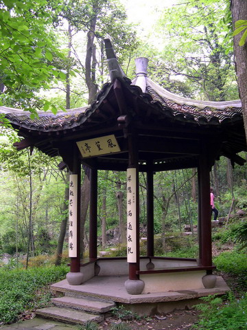 风篁岭过溪亭边的石崖上有乾隆所书“风篁岭”三字,由于年代久远,石崖上字迹已泯灭不可辨,周边环境也较杂乱。今年整修石崖周边环境,修复了崖上石刻。在风篁岭摩崖石刻的崖脚,有一处水塘,据记载为“小水乐”,因溪流叮咚,如音乐之声而名。通过在“小水乐”西岸恢复风篁阁,四周广植竹林,营造了“风篁夹道”的景观效果。 |