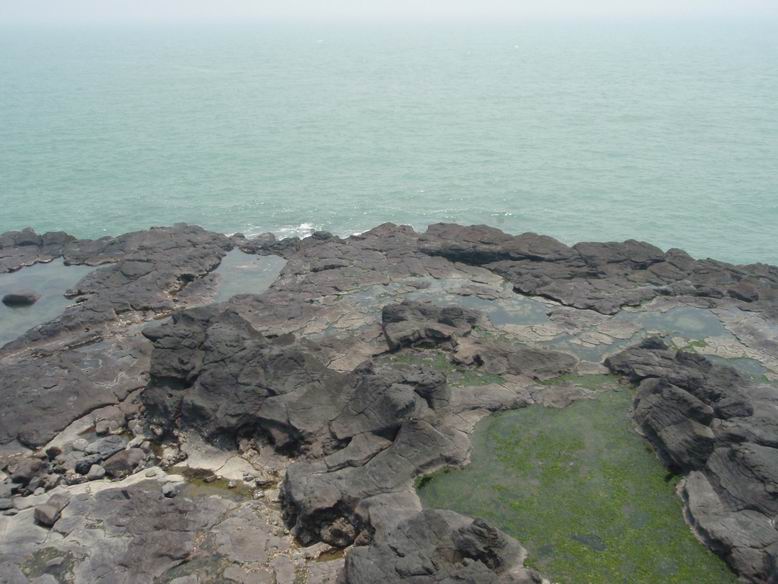 08年四月末乘去厦门开会,去了一次漳州火山地质公园。一早来到厦门旅游客运码头,坐到漳州港的渡轮,10元/人,基本上15分钟一班吧,20分钟就到了。上了岸就是汽车站,找到到石塘的车,后窗上有火山公园的字样。车上没有人,等了半小时,车终于开了,票价是12元,开了一个多小时,最后剩下的五个人都是到火山地质公园的,车便送到了公园门口,司机留了个手机给我们(13159179558),说最后一班车是15:30,打电话车会来门口接。公园门票是80元,另上林进屿还要50元。我因为要赶回去的时间,就没有打算去,有些遗憾,规定上岛的船至少八人起售,散客可到里面的售票处看看是否可以碰上团队一起去。这里的地质公园基本上是称为香山火山景区的那片海滩,沿海有大片黑色的火山岩,1700万年前喷发的。海滩不长,走个来回两小时足够了,觉得80元的门票还是贵了。出门时是下午2点多,坐了门口的一辆私人小车到汽车站,听司机还有个景区叫牛头山,但没有班车到的,看来交通还是很成问题,因为景点、交通是私人承包的,彼此之间缺少合作。到了车站上了车,不一会儿车开了,车上只有我和另一个乘客,开出不久司机接了个电话,车又开回去了,又等了近半小时才开出,这辆车的效率实在让我哭笑不得。