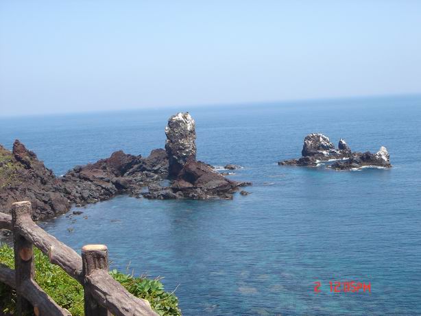 第三天 今天计划的是济州东部一日游, 司机大叔9点准时到了酒店门口等着我们。酒店的姐姐和大叔说了先带我们到银行。当地的银行9点半才开门,我们就和一些阿婆一起在门口等。银行里没有隔着玻璃的柜台,感觉很人性化,员工的态度也很好。 再次成为百万富翁后,大叔开着我们去到山君不离,那里也非常美丽,强烈推荐,体验一下站在火山口的感觉。 城邑民俗村一般,就是了解一下几百年前,这里的人的生活。总结下来就是:苦!济州岛女人更苦! 看过All In的朋友想必比较了解涉地岬这个地方,很多景都是再这里采的。挺美的一个地方,在靠海的山上,天蓝海蓝,阳光明媚。山上还建了一个教堂,更感觉这里的纯洁。看起来许多新人都在这里拍婚纱照,有点小浪漫。 中午时分,我们来到城山日出峰,阳光特别好,稍嫌热,我们决定先在附近的餐厅吃点东西,再决定要不要爬。 一边吃我就一边看着游人们慢慢地往上爬,感觉挺辛苦,所以三个人又一次打退堂鼓了,惭愧。 也许是不喜欢黑暗的关系,对万丈窟并没有太多的好感。就在一个黑乎乎的洞里走,也看不懂岩石的种类和形成。没走多久我们三个决定撤,直奔免税店,嘿嘿,一帮物质女人! 我们去到的那家叫新罗免税店,店不大,奢侈品的品牌和价格比香港差多了,不过当地的土特产还是有很多选择的。除了当地的特产红参和巧克力,还买了很多The Face Shop的面膜。值得一提的是这里的兰芝很便宜,一下子买了四个免洗的补水面膜,才90块不到一个,超级划算,头脑一下子又发热了。估计这个“景点”是我们三个逛得最久的,唉。。。。。。 六点半回到酒店,赶紧洗个脸后又一次奔赴中央地下商场了。小景说要买100片面膜带回去,也是是会花钱的主。呵呵。回酒店的路上,我们终于找到了传说中的辣炒年糕,可能是期望值太高了,反倒觉得不怎么好吃。太甜,有点象番茄酱炒的。 美好的时间总是短暂的,明天就要会结束旅行,回到上海了。。。。。。