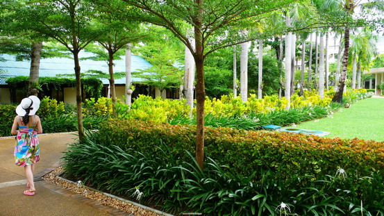 Movenpick的早餐很丰盛,水果就有十种八种,哈密瓜和西瓜最不好吃,还是菠萝蜜、菠萝和木瓜这些热带水果比较不错,呵呵。当然还是照例吃了一个cheese煎鸡蛋卷。 接下来的时间,我们在酒店里散步,游泳,溜达到海边自由活动。Movenpick从外面看着不太起眼,里面却是一个绝美的热带花园,最有特色的是各种各样的泰式别墅,掩映在苍翠欲滴的热带植物之间,曲径通幽,柳暗花明,环绕着三个美丽的泳池,我觉得光是在这里面玩儿就能花上大半天,但我们只能走马观花了。穿过sand bar,就是Karon的海滩了,我跑到海滩上狂拍照,想到下午就要离开美丽的普吉,心里很惆怅,为什么美好的时光总是那么短暂……