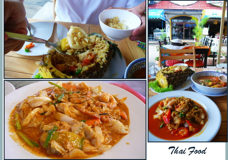 (Song pee nong的咖喱虾和菠萝饭) 到了Shopping时间,走了几百米就到芭东最大的购物中心,好像一个叫Jungceylon,一个是Robinson,类似北京的东方新天地。Jungceylon一层和地下一层有很多卖工艺品、纪念品的,比如椰子壳做的小灯,各种漂亮图案和颜色的沙龙,包包,香薰产品,佛像,木制大象等等……Robinson里有家乐福,我在那儿买了很多袋装和盒装的冬阴功汤料(Tom Yum Paste)、绿咖喱汤料(Green Curry Paste),14b-15b(合人民币3块钱)左右一袋,回来看到taobao上有卖的,居然卖到12块钱一袋,真够贵的!(回家已经煮过好几次冬阴功汤啦,哈哈,盒装的味道比较好,推荐大家买,袋装的好像没放香茅,感觉味道失之毫厘差之千里啊~~~~~)另外,我还在Robinson一层商场买了2条沙龙,打5折,每条250b左右,质量和花色都比路边卖的要好看。其实最主要是路边的太不靠谱,之前碰到一个女人拿沙龙往我身上围,然后告诉我1250b一条,还好我看了攻略说这东西也就二三百铢,赶紧闪人~~~~~~。 一转眼逛到了下午4点,惊觉时间飞逝,我们决定不再在购物中心里泡着了,Shoppping mall全世界都差不多,但海滩和阳光却是我们来这里的主要目的,所抓紧返回Karon海滩,那边的海水明显比Patong这里要蓝,要清澈,沙滩上的人也少很多。马上骑摩托回到Andaman Seaview,这次路熟了,十二三分钟就飚回去了,呵呵~ 回到酒店赶紧换好bikini,到酒店的泳池里去祸害了一下,哈哈,水里漂着很多树上飘落下来的花,又白又嫩就像蜡做的一样,我摘了一些戴在头上~~~玩儿了一会儿觉得不过瘾,又裹上毛巾跑到海边,海里浪非常大,但居然还有人在钓鱼,佩服~~~~ 19:00 玩儿累了,天色也暗下来,我们回房间换好衣服,骑车去Simon Cabaret。很有意思的是,一到这儿感觉好像亚洲人一下子变多了,日本、韩国、中国的都很多,欧美的少。人妖表演并不像我之前想象的那样露骨,除了几个小丑以外,其他的歌舞都是很优美而华丽的,服装、舞美、灯光之绚烂令人惊叹,值得一看。可惜不能拍照录像。其中有几个特别美,巧笑倩兮,美目盼兮,其妩媚绝对不亚于女人……她们还排了许多亚洲国家的歌曲,比如韩国的《大长今》、《阿里郎》,中国的《一代女皇武则天》、《潇洒走一回》什么的~~~~全场最高潮是两个扮成日本歌妓的小丑跑到观众席来互动,好几个第一排的男士脸上都被亲满了红唇印(服务生立即递上了擦脸毛巾),吓得我们庆幸没有买到第一排的票,哈哈,不然被亲到就惨了,要做噩梦滴~~~~~~ 节目结束以后是跟人妖合影时间,ladyman们排成一长列,笑容满面、不停的冲我们招手,不过她们的招徕是热情的,照完相以后要起钱来也是不含糊的,跟我们合影那个可能是级别稍高一点儿,我们给了她20b/人,她立刻摆摆手说她是40/人的,两个人应该给80b,汗~~~~看来以后大家合影之前最好先问价(砍价),省得拍完了挨宰~~~~ 看完表演准备回去时发生一个小意外:摩托车胎瘪了。不知道是不是路上扎破了。正在着急的时候,过来好几个管理人员,其中一个很nice地把车推去帮我们打好了气,并告诉我们附近不远就有修车的地方,打好气应该可以骑到那里。赶到修理铺,师傅三下两下弄好了,说车胎没什么问题,就要了10b。我们总算松了一口气,不然半夜三更车坏在芭东真是一件麻烦的事儿。 已经晚上9点半了,晚饭还没吃呢,我们往前开了一小段就看到攻略上提到的99海鲜大排档,决定就在这里解决。我们选了左手边第一家人气特别旺的,terry说晚上换换口味吃鱼吧,我们就点了一条柠檬汁蒸鱼,黑椒炒咖喱蟹,炒空心菜,一个pan cake,还免费送了一份菠萝,一共850b。蒸鱼极辣,放了很多小辣椒,汤汁香辣爽口,让人胃口大开,又是一通狂吃…… 晚上把摩托车停在了安达曼海景的门口,油还剩一半呢。这天是我们在普吉最完整和紧凑的一天,Patong-Karon跑了两个来回,到夜里睡下已经快12点了,还真有点儿累呢。 Tips1:关于防晒。 去Phuket之前我买了网上超赞的两款物理防晒霜,一款是资生堂安耐晒金瓶Anessa(SPF50,PA+++),一款是Fancl蓝瓶(SPF30,PA+++)。安耐晒金瓶防晒倍数高,最主要是它超强防水防汗,在普吉我们成天在海水和游泳池里扑腾,这点很重要哦~~~这两款中更喜欢Anessa一点,主要是质感清爽,完全没有油腻的感觉,连最抗拒擦防晒霜的terry都可以接受,再加上看了攻略里说某GG被晒伤起水泡的先例,所以他每天出门前乖乖地擦一遍,哈哈……60ml的一瓶我们俩人7天差不多就用完了。Fancl防晒就油腻多了,不防水,我只能不下海的时候擦脸,但如果上面再盖粉底的话会有点儿搓泥~~~~ 我的防晒措施还有:一顶超大的白色大沿帽,偶尔穿长袖,偶尔戴太阳镜,太阳伞就用不上了,因为海风很大,而且那边即使是烈日下也没人打伞,都是来享受阳光的(几天里唯一一次见到有几个打伞戴帽子的是一个韩国的旅行团)。有一天我在phi-phi岛上打伞,路人都用很奇怪的眼神看我,遭到Terry的嘲笑,只好收了,呵呵~~~~。带去的伞都是在下雨的时候派上用场的。 我还带了几张Fancl的美白补湿面膜和一瓶美白保湿喷雾,如果白天晒太久,晚上就拿出来敷一敷,不知道有没有作用,心里安慰一下吧~~~这样一来我只是略微晒黑了一点,晒伤就完全没有,也可能是因为时常阴天的缘故~~。 Tips2:关于换汇。 走之前在北京问了N家中国银行都没有泰铢,只好换了一些美元带去。人民币在泰国兑泰铢是非常不划算,汇率也就三点几,所以尽可能多带一些美元。曼谷机场汇率比