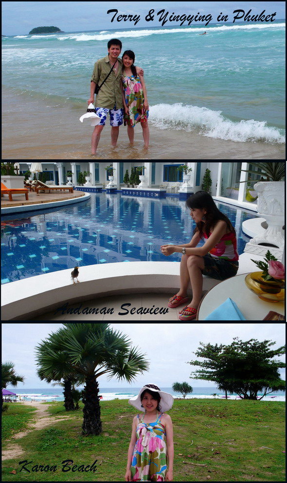 | Terry & Yingying的曼谷+普吉+PP岛蜜月旅行攻略 “面朝大海,春暖花开”,找个美丽宁静的小岛享受大海、阳光和沙滩,是所有情侣们的梦想。我和terry选择了去泰国普吉岛,因为这里不仅有旖旎的自然风光,也有着令人心驰神往的东南亚风情和美食。 从决定去到最终成行,前后也就两个多星期的时间,但我们的行程安排得还不错,回来后好几天都沉浸在回味之中。多亏了几个朋友的推荐和网上的攻略,让terry和yingying度过了这次完美华丽的蜜月旅程。所以我也做点小贡献,整理了这份攻略,既是对这段美好日子的纪念,也希望能提供一些亲身经验以供大家参考。 之前好友推荐去苏梅岛,说那边游客较少,比较清净,还有一个朋友去的沙美岛,她说属于尚未开发的地带,岛上民风淳朴,游客极少,物价便宜。但我们最终还是选择了普吉,因为第一次去泰国,就选了旅游业相对发达和最有代表性的地方。Phi-phi岛是印度洋中的小岛,是传说中的人间天堂,我们选择在这里住了一天,事实证明在Phi-phi的一天是泰国之行中最美丽和难忘的时刻。 在普吉岛,我们住在卡伦海滩,而没有住在大多数游客选择的芭东海滩。这里的优点是更加宁静,海水清澈,但不如芭东商业发达,也没有那么繁华热闹。如果喜欢单纯的享受海滩,我建议大家住在卡伦或卡塔,如果喜欢灯红酒绿、四通八达、购物方便的繁华之地,那么芭东将是不错的选择。在整个行程中住过四间酒店,最喜欢是慕温匹克度假村(Movenpick),真的太美了,推荐大家去。