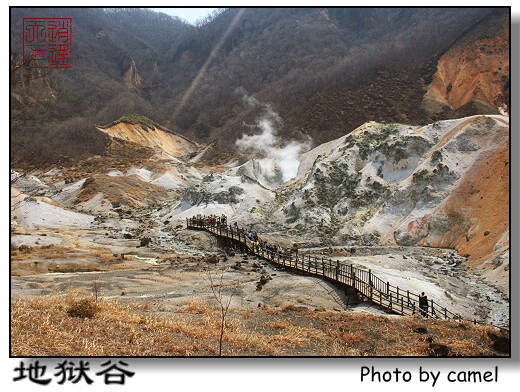 08年4月得空去了一次北海道,由于季节的原因,这不是一次很成功的旅行,4月的北海道还没有进入春季,积雪早已开始融化,因此既不能赏樱也不能滑雪,唯一不受季节影响的就是泡温泉了,因此在住宿上就尽量选择温泉宾馆了。 此行的全部游记和照片在:http://www.camelsky.com/asia/japanhakodate.html 北海道第一印象是火山多,温泉多,最著名的是登别的地狱谷: