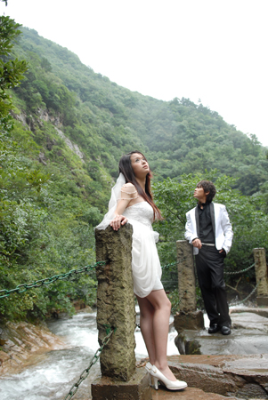 重走姚明婚纱路 新人相聚太湖源 自从姚明叶莉来太湖源景区拍摄婚纱照以后,公司董事长欣然作出公开承诺:自2007年7月31日起,凡来太湖源拍摄婚纱照的新人,无论来自何地,(包括外国人)一律免除景区门票,并积极提供相应的多项服务。 在姚明叶莉拍摄婚纱照的几个主要景点,如云碧潭,思源廊,同心桥,千仞崖等地,景区还专门设立了纪念碑;在思源廊,公司还花费了数十万元,重新建造了漂亮的廊坊,并在廊坊中陈列了姚明叶莉来太湖源每一景点的图片和其他物件,以示纪念。 在过去的一年中,有近千对新人慕名来太湖源拍摄婚纱照,他们循着姚明的足迹,重新体验姚明叶莉曾经拍摄婚纱照那几个美妙的场景,同时探究姚明叶莉太湖源头爱情之旅留下的迷团—— 姚明为什么选在太湖源景区拍摄婚纱照呢?一年来,好奇的人们苦苦探究,但至今仍未找到答案。这里讲几点因素,供大家参考:一是太湖源风景区十年来在上海的宣传攻势确是厉害,目前该景区在上海是家喻户晓,深入人心;二是该景区的品牌在上海确有很高的知名度和美誉度,早被江浙沪人们所认可、喜爱、钟情;三是“源头”总有一种神秘感。猎奇是人们普遍存在的心态,作为大明星也有常人的这种心态。再说“源”和“缘”同音,在圣洁之水的源头,铭记二人的爱情姻缘,确是一件两全齐美的事;四是据说姚明原想去九寨沟,但感到有诸多不便,坐飞机去很难做到保密,车队去时间又不允许;再说太湖源头也被上海人誉为小九寨沟的,因此,姚明来太湖源头也便是顺理成章的事了。(程继荣)