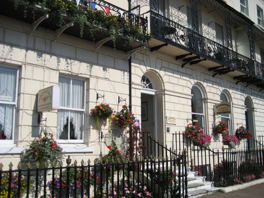 在大海的对面,整一排都是酒店或餐厅,所有的酒店都很具有它自己的特点:纯色的外墙——或白、或淡蓝、或淡黄,唯一的装饰物是一大片鲜艳得不太真实的花——红黄蓝紫白,竞相开放,美得让人窒息!不过,缤纷的小花一直都是英国城镇的特色,去到哪里,游人都会惊讶于它们的娇媚! 酒店的规模都不大,我从外观猜想,每间酒店也许只有十来间的客房、一间客房一晚的费用约为48-60英镑,折合人民币则为750-900元不等。估计正对海滩的那几间也许会更贵! 周末周日由于是假日,房间会更加紧缺。 我看过有很多房客从海滩游完泳就直接穿着泳衣,光着脚丫子过马路回酒店的。这也说明,路上的垃圾不多。呵呵。