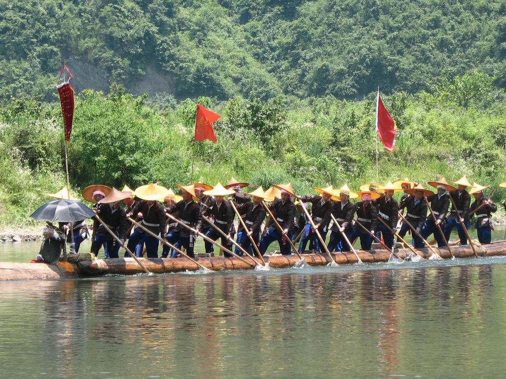 29号早晨,起床后还是去凯里客运站坐前往施洞的车(21元)。关于施洞独木龙舟节,有一个古老的故事。相传在遥远的过去,清水江边住着一个苗家老人,他有个独子叫九保。一天,他带着独子下河打鱼,突然江上狂风大作,巨浪拍天,江中跃出一条恶龙把九保拖进龙洞,老人悲痛万分,于是潜水入洞寻找。见龙已把他儿子杀死,并把尸体当作枕头酣然入睡了。老人愤怒已极,决心为子报仇。他上岸拿了火镰,火草再次潜入龙洞,趁恶龙酣睡时放火将龙烧死。龙洞烟雾弥漫,大雨滂沱,一连九天九夜天昏地暗,大家很是发愁。当时有一个妇女带着孩子摸黑到江边洗衣。天真的孩子将她妈妈的捶衣棒在水里划上划下地嬉戏,嘴里念叨着:”‘咚咚多!咚咚多!”谁知他这一喊,天上顿时云消雾散,太阳高高地升起来了,大家高兴得欢呼省跃。人们看到被烧死的恶龙飘浮在水面,便先后赶到江边分龙肉。胜秉寨最早发现,分得龙头,施洞去晚一步,分到了龙尾,杨家寨也去得较晚,只分得龙肠子。龙肉分走之后,那恶龙便托梦对大家说:“我丧了老人的独子,我已赔了生命。但愿你们老少行好,用杉树仿照我身躯,在清水江一带划上几天,就象我活着时一样在江河嬉游,我就能兴云作雨,保你们五谷丰登。”于是各寨互相协商,平寨为农历五月廿四,塘龙廿五,榕山廿六,施洞廿七,定在上述四个地点划龙舟。不过近年当地政府有所调整。 中午之前到了施洞,一个普通的破落的小镇,沿路下到江边,却得知,龙船昨天已在施洞划过了,今天去老屯划,明天中午再回施洞。在路边搭面包车约半个小时到老屯,龙船还没开始,倒是碰上了当地赶场。现在少数民族也渐渐汉化了,只有在这样的节日里才看到许多盛装打扮的苗人。这天实在太热了,烈日炎炎,我也懒得写什么了,还是发图片吧。(携程发图片太困难了,就五张,还得压缩,郁闷。) 河滩上没有风,感觉自己要中暑了,所以没有等到龙船赛结束,我就坐车顺路去塘龙银匠村逛了逛,然后去施洞大桥等凯里发往镇远的最后一班车路过。终于,在夜幕降临的时候,我到了镇远,这个曾在火车上留给我惊鸿一瞥的古城。华灯初上,夜色温柔,舞阳河清清流淌,这是我一路经过的贵州看到的最整洁漂亮的小城。当晚住在舞阳河畔,网上推荐的刘胡兰客栈,也是只住了我一个人(25元一间的江边房,便宜啊),老板娘极豪爽,有男儿气概,跟邻居在大厅里摆了一桌麻将打得兴致盎然。而我还是一个人出门去,吃了晚饭,走到老道桥去看了看夜景,跟当地的老人聊了聊天,夜深了,再慢慢地踱回客栈,老板娘的麻将还没有散场,舞阳河上还有船只飘荡。洗去一身的风尘仆仆,挨着枕头我就睡着了,梦里不知身是客啊。