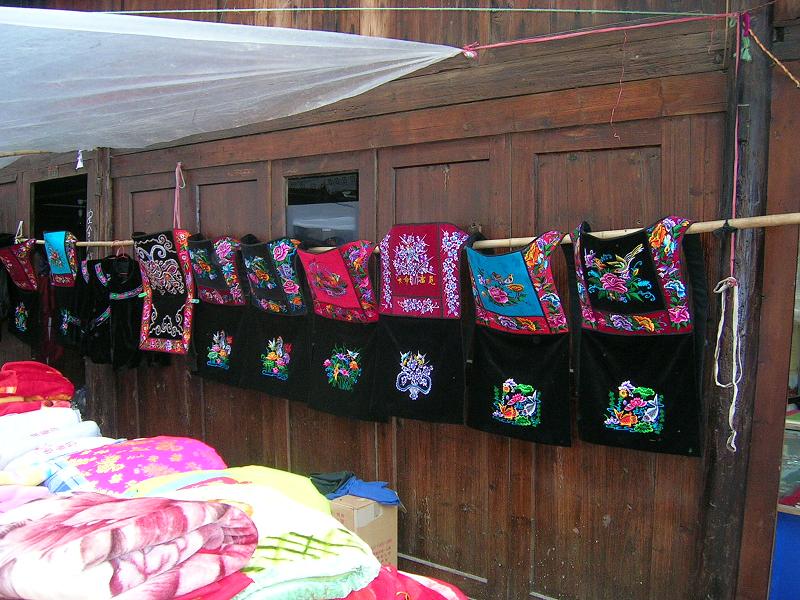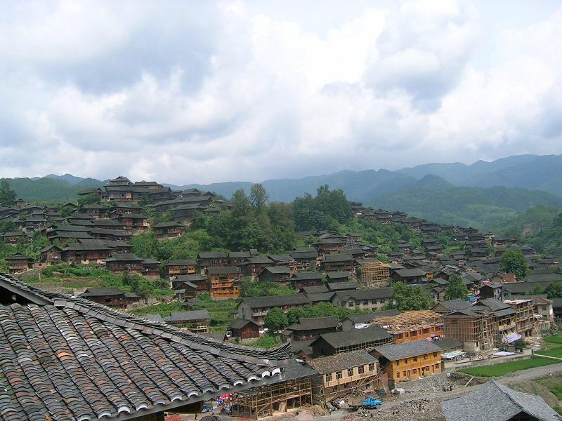 告别了镇远那株大向日葵,我们打的去了火车站。出入镇远,当地人都选择火车,经济便利,班次也多,如果坐汽车价格贵时间长,划不来。我们坐了最早一般火车,k65次9:22开往凯里的火车,票价11元,汽车大概要30多元。火车到凯里差不多需要一个半小时的样子。我们在火车上竟然遇到从兴义来镇远旅游的游客,非常热情,向我们介绍了不少兴义的景点,给我们留下了很好的印象。到凯里11点不到。我们就坐上一路公交车到凯里汽车站。也不知是否因为没进城中心,还是凯里本来就是这样,号称贵州第二大城市的凯里给我的第一印象是破旧。 我们很快就买到了票,票面是12点30分的,但是由于有两大队伍已经将这般车的所有票都买完了,我们11点30分就开车,开往西江千户苗寨。当时我们还没有吃中饭,也没有时间去寻找传说中的凯里酸汤鱼。这一路上,山路漫漫,路况倒是不差,但是总没个尽头。开始还一直在意外面到了哪里,郎德上寨、雷山……沿路看到一路的玉米地,玉米地里总有大片大片的向日葵。过雷山后半个小时,我们以为快到了,结果汽车一会上坡一会又下坡,停停走走,却总不到终点。2个半小时的路程,却让人有坐了4个小时一样的心焦。 终于到了西江苗寨了。第一印象,好大的寨子;第二印象,满城都在大兴土木,道路泥泞不堪;第三个印象,西江的太阳很毒,刚下过雨的西江开始被太阳晒得很热;第四个印象,千户苗寨果然厉害,集市热闹非凡。奇怪的是西江苗寨竟然没有收门票。 如果你想住网上大名鼎鼎的李老师客栈的话,一定要打电话。TEL:0855-8800480/8861656,手机:13595575340。因为他们家不在寨子里面,而是在不远处的山上。老远看到他家的招牌,但是就是不知道怎么走过去。最后是李老师他媳妇和小孙孙来接我们的。之后才知道原来我们来的中巴车上的售票员是李老师媳妇的表妹,就住在他们下面。现在想想真傻,怎么没给他们来个全家福,也不至于只有脑海里才有他们清晰的脸。到他家气喘吁吁,李老师给了一间带厕所的两个床的小房间,房间是木质的,床铺很干净,窗外就是另一个山头,有几户人家和一片向日葵地。 这时,李老师的儿子也从外面接了一位女游客来,是安徽的大学老师,一个人背着45L的大行囊打算走遍整个贵州省。刚开始看到李老师儿子背着大背包,还以为是安徽老师的同伴呢。 安顿下来,我们打算和李老师他们一起吃中饭,回来看照片发现当时已经3点钟了。是他们本来就吃这么晚还是特意等我们呢?边吃边聊,李老师家很热情,也很朴实,李老师一直以他的广受好评而引以为豪,并且致力于发展整个寨子的旅游产业。同时我们得知,之所以街市这么热闹,是因为我们运气好,今天是寨子赶集的日子,每12天才有两天赶集日,从各个寨子来赶集的妇女几乎是盛装出行,头上发髻梳得老高,边上还插一朵鲜艳的塑料花,有些傣族的味道。饭前,我简单的洗了个澡。真是明智。因为洗澡在楼下,而且环境比较差,不是很干净,所以白天洗澡要比晚上洗澡方便很多。怀念镇远茂荣客栈干净的卫生间! ![]() (从李老师家看到的西江苗寨) 饭后我们和安徽老师一起往街市逛去。这时多变的天又翻了脸开始下雨淅淅沥沥的小雨来。集镇大约要到六点才散。卖的都是一些家常用品,什么土布呀,拖鞋呀,最让我心动的还是那背娃娃的“背带”。机器绣花,做工精致,价格要的都很实在,但是不能还价。可恨我心动却没有行动,心痛啊心痛,失误啊失误。逛完集市,我们三人开始上山去找苗王的家。寨子就在山脚,去山上有很多条路,一路都是台阶和民居。苗王家就在山顶。路上遇到一位老人家为了买鸡,从山上下来买,回家的路上跟我们一样走得是气喘吁吁。到了苗王家,绵绵的雨就开始下得更急了。我们就进了苗王家里参观。过了一会来了四五个清华的音乐老师,来苗寨采风的,听说他们9月旅游节开幕后还会再来,真是羡慕煞人了。 我们坐下来和住在苗王家里的几个四川游客聊天,他们已经在苗王家呆了两三天了。得知前一天晚上正好有个团队让苗王安排演出,他们有幸看到了。苗王是苗族最有地位的人,王位是世袭的,苗王最小的儿子会继承父亲的地位。现代的苗王一般都是做着和政府合作开发苗寨旅游的事情。不过在开发旅游的同时,估计多半的收入都进入他家的腰包了。他们后面就准备造一个大客栈,是苗王和政府共同投资了,可以接待上百名的游客。一般寨子里的表演活动都要找苗王联系的,所有想蹭表演看的同志们可以多往苗王家跑跑。现在寨子大型土木,所有连表演的场地都没有了。到9月底才能恢复正常。要住苗王家,相比其他人家价格可不低,住宿60,比李老师家贵0.5倍,吃的也贵,一餐20一个人,在李老师家10-15元一个人。当然必须承认苗王家要新很多,木头似乎也结实些,看着也干净很多,不过没参观厕所。但是就美人靠外的景色来说,我更喜欢李老师家的,因为苗王家住山上,居高临下倒是没错,但是看到的是整个寨子的屋顶,黑压压一片,而且是在寨子的背面;而李老师家在山对面,位置够高,居高临下可以看到整个寨子的正面,包括苗王的家,晚上各家点灯,寨子更是另外一种味道。另外就主人的感觉来说,苗王和政府合作的多了,商业味道很浓,还给人奇怪的高人一等的感觉,感觉不那么亲切,而李老师他们是热情的贫民,聊聊家常、了解一些寨子里面的事情。不过还是要感谢苗