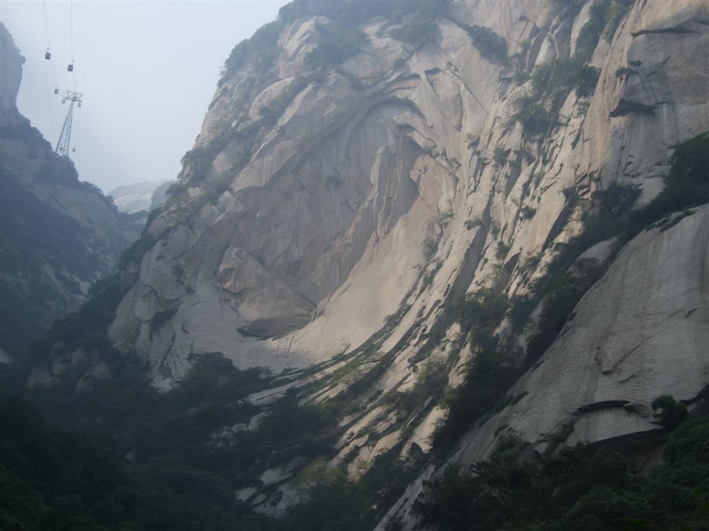 1810 我们离开兵马俑博物馆,准备坐游5或者914回西安。结果到了汽车站,见尾不见首的排队神龙让我再次惊出一身汗。无奈,我排。排了一会儿,看到前面一对夫妇拦了个出租想回西安,但是价格没有谈拢。我一看有机会,又拦了一辆,结果我们和那对夫妇一起,4人100元回到了西安。司机虽然不厚道,收了走高速的钱,却走了一条超烂超颠的普通公路,但好歹把我们送回了西安。 1945 我们坐公车前往鼓楼,一路感慨,西安由于缺乏轨道交通,而且行人司机素质都较差,因此堵车严重,同时这还导致至少两个问题:1,城市空气质量极差。2,每走三五步就有一口痰,非常恶心。不过好处我想应该也有,比如医院生意应该不错。 2015 我们抵达鼓楼,吃上了德发长的饺子,由于量太少,又去了附近的回民小吃街,本人感觉那儿比较脏,因此我随着人流漂了一会儿,中间就吃了个韭菜饼,因为我天真的以为,韭菜是杀菌的,总好过其他东西。但是,正是这个万恶的韭菜饼,害得我晚上加餐吃上了香甜可口的黄连素! 2008.10.1 0930 我们到达华山(收费口有人示威游行,我们的车绕行了,原订只要90分钟)。华山有两个上山点,一处是我们车停的地方,要步行6.5公里山路,景色秀丽但路途危险,我由于韭菜饼的关系,因此叫个差头10元去了另一处索道排队处。来到排队的地方,很好,人很少,只有几千个人,我俩充分花挥革命乐观主义精神,说说笑笑得排了2个小时的队伍,坐上了进山的班车(相当于黄山的新国线),同时给检票的递交了咱俩学生票,hoho。但,我们也听到了一个非常不幸的消息:进山之后,如果要坐索道,还要再排3-4小时的队。而自己走智取华山这条道也只需要1.5小时。 1215 我们正式开始从山脚下起步,一路上行,几乎没有平路,快到山顶的时候,华山上出现了严重的拥堵现象。本来山道就小,大家堵在狭小危险的山道上上下不能。此时,我终于明白为什么大家都说华山险,人多啊,这么多人在山上挤来挤去的,你说能不险嘛。