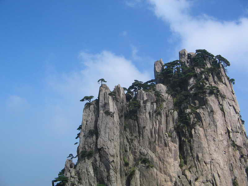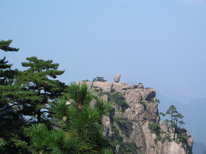 八、帐篷 下始信峰,随人流一路向北海进发,远远地看到山凹里一片红色屋顶的建筑,那应该就是我们的目的地――北海山庄。终于见到了那片帐篷群,红红绿绿,如蘑茹散落一般,煞是醒目。小小的场地上,来自各地的人们,来来往往,吴语京片秦腔此起彼伏,旅游的气氛那是相当的浓厚。场地的北侧有微型的医务室、警务室、小卖部,小卖部有各种食品、饮料出售,开水泡方便面五元一盒,还有睡袋、大衣出租,好象大衣是30元一件。后来我想,只要是游者旅游的决心比较大,即使在山上没有住宿的地方,找一室内的走廊或角落,在地上铺上雨衣,套上睡袋,不行再租条大衣,大体一晚上也能应付过去吧,当然这仅限于年轻力壮的,那种拖儿带口的就不太适合了。这样做,苦是有一些,但仅仅是一晚上而已(甚至还不到一晚,因为不管你睡在那里,凌晨三点多钟你基本上就睡不着了。因为有比你想象中更早起床看日出的人群会充当你的闹钟。我想,当年徐霞客闯荡天涯时的条件应该还远不如此。对于痴迷于黄山美景的驴友而言,这些苦又算得了什么? 警务室前挂着幅大大的团旗,难道里面的警察都是共青团员?向管理帐逢的人出示了收据,此时才看了下收据,盖的章是“黄山驴友协会”这几个字,我想网上比较出名的如云海楼、望秀山、游豆腐等代为预订山的住宿,都应该是以这个名义盖的章吧。管理人员将我带到小卖部后面一排屋子前,那里有工作人员宿舍以及厕所等,有厕所的那排屋子里也有房间,大约是所谓共用卫浴设施的四人间,但浴室没有看到。住宿的房间面积极小、条件比起学校的宿舍尚且不如,但较之账逢又是强多了,只是不知价格几何?又收了100元,将收据换成了另一张押金收据,凭此收据可领取开水一瓶。管理人员问及我们住几人,听说是三人,主动将一顶比较大的账篷安排给了我们,真是好人啊。帐篷下面统一垫有简单的防雨布,帐篷内则有一张垫子、一床被子,仅此而已,睡三个人稍小点,但挤一挤应该还是可以的。将贵重钱物随身携带,多余的物品则放在了账篷内,拉下拉链。虽然没有锁,但是此时此地,想来也没有小偷之流的出没吧。 九、那只猴子 好了,一切收拾妥当,已是中午11:30。出发吧。营地北侧就是一条小道向上,那里渐次有三个景点:清凉台、猴子观海、狮子峰。向上的人流似乎不多。虽然这些也都是北海景区有名的景点,但相信不少旅行社由于时间安排的关系是不来的,这让我们这种自助游的人后来有充裕的时间去享受攀登的乐趣,自由地欣赏后山的美景。 这一片景区所见有一部分山峰即是我们先前在始信峰看到的,只不过是从远处另外一个角色来观看,但另有秀美之处。与后来第二天排队前行过程中匆匆一瞥的前山壮观风景相比,这里的风景更多了一些灵秀。而且在这里每升高一段距离,即设有突出的观景台,在台上可尽情地观看变幻的风景。天是透蓝的,虽然没有云海,但也因此得以清晰地观看这眼前天造地设的美景。由于少了旅行社团队的干扰,我们总能有机会肆无忌惮的观景、拍照。 到达清凉台是11:40,这是一处平伸出去的平台,一个拍照留影的绝佳处。相信不少黄山宣传画的景色即是在此抓拍的。 从清凉台继续向上攀爬,就见到了那著名的猴子观海。此时约13:00分。小时候,在一邻居家曾看过一幅风景画,一只石猴,静坐山巔,远观涛涛云海。如今这只猴子就在眼前,沉默无语,似乎等待了我许多年。我从远到近,逐渐的接近它、欣赏它。昔日的孩童,如今已届中年,三十年似乎是那么短暂。这几年称得上是梦想的事情似乎越来越少,如今终于见到了这只猴子,算不算也是一个孩时小小梦想的实现?往狮子峰进发,山路上已只见零星游客,到达狮子峰顶时,约14:00,更不过廖廖数人。我们在峰顶停留了许久,美景一览无遗,唯有尽情狂拍。