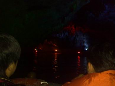 天桥沟红叶 中午12点左右游玩结束,驱车直奔本溪水洞。出了山门前边那条小路,在有天桥沟宣传牌的岔路口左转继续走省道S201,在八里甸子东边经新开岭西到达本溪水洞,这条路上的路标都不是很明显,但大体上是走本溪方向,先到了本溪县城(不是本溪市),然后多问问,可以按照水洞的路标到达水洞。全程 水洞是个很美的地下河,游艇始终在一个巨大的山洞中前进。开发出来的部分