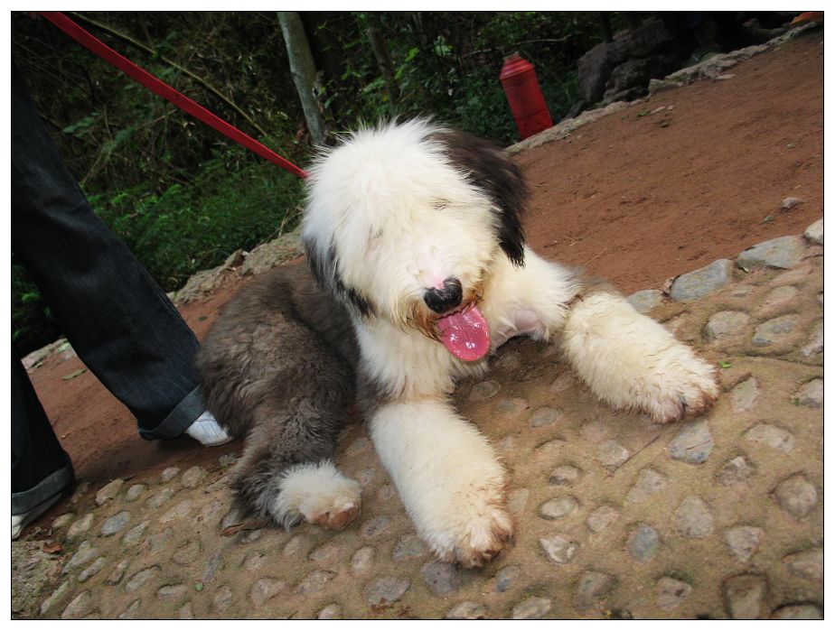 滴答滴答。。上山咯,排队走好,(*^__^*) 嘻嘻……,看起来顺利的前进吧,汗,最前面的古牧,也就是多妮小姐,走到一半居然来了个趴下,俺大小姐不走了,苦了我们后面的,正中间看着湖面头发晕,我若是再多看几眼,估计就这么倒下去了吧。也苦了布丁爸,及时抱着古牧多妮往前走啊。。。顺利通行。虽然回来的时候,多妮还是很没用的趴下了,让布丁爸再辛苦的抱了一回,估计它心里正美着呢,帅哥抱多好,要多来几次才好。。哈哈