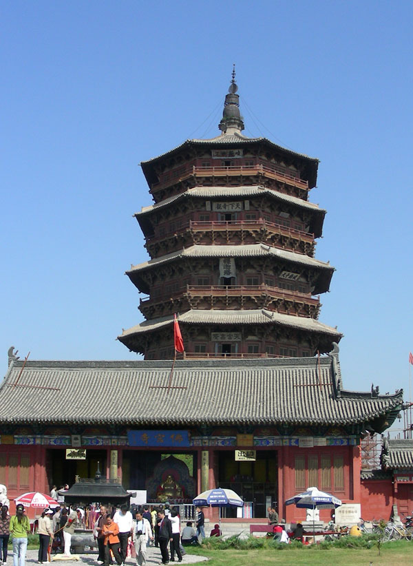 应县木塔,门票60元/人,停车10元/辆。虽然没有云冈石窟和悬空寺那么有名,但现在来的游人也不少了,看来山西对旅游的宣传搞的不错,记得在去大同的高速上就能看到这个塔的宣传。去看了看,觉得倒也是值得一观,全木制的塔,塔中间有一尊大佛,很高,游人可以登木梯上塔,由于木踏的历史悠久,出于文物保护,现在游人只能到二层了,听说原来可以到顶。现在木塔的周围在修建一些建筑,看样子象是寺庙的建筑,估计再过几年来,这塔就改圈起来不让上了!
