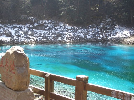 听说晴天正午阳光直射池底的时候五彩池才好看,第二天下午天已方晴,12点多从长海下到的五彩池,随着阳光变化,在小小的池子不同的方位流连到近2点,很值!老爸说我们身边走过的游客没有上千也有数百。不过去过的朋友说,夏天的颜色比我们所见还是更丰富的。顺带说说时间上的一个小秘诀。由于是自带干粮,我们随时可以进餐,且一般不正点进食,所以午餐时间都可以留守景点,在那个时候游客骤减,即使五彩池这样的小景点,只要耐心等待一拨拨游客过去就会有较少干扰的场景。我挺高兴的,逛了一周的公园。老妈在无人的山沟里放声大叫,吐尽胸中废气,人显得精神起来。然后大大赞美负离子的功效,称回去小雨天要散散步。晚上打扑克,上次输得让我担心的老妈连连告捷。看来旅游未必要追求奇山异水,到周边环境好一点的山水间锻炼一下,对身心也大有好处。