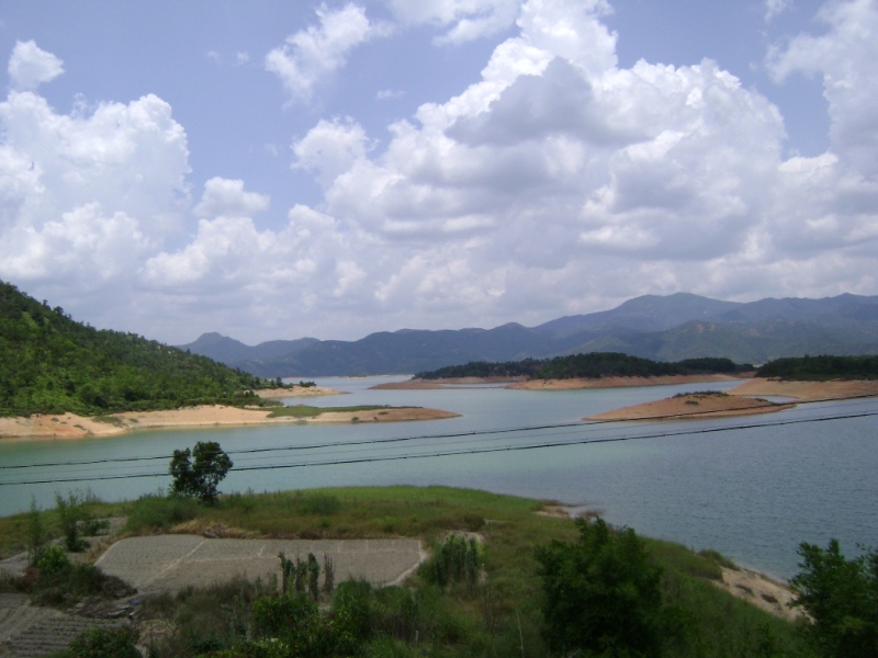 (西枝江) 一直就有心要溯源而上,见识一下这两条江河的源头。08年的一个炎热的夏日,借到汕尾的海陆丰地区旅游之机,在设计旅行路线时便把白盆珠水库列入其中,因而得以一睹其风姿。 那天上午从惠州城区出发,走广汕公路往汕头方向行驶, 在稔山镇附近转入前往白盆珠镇的省道。道路是两车道的水泥混凝土路面,路况很好,没有多少车辆。
