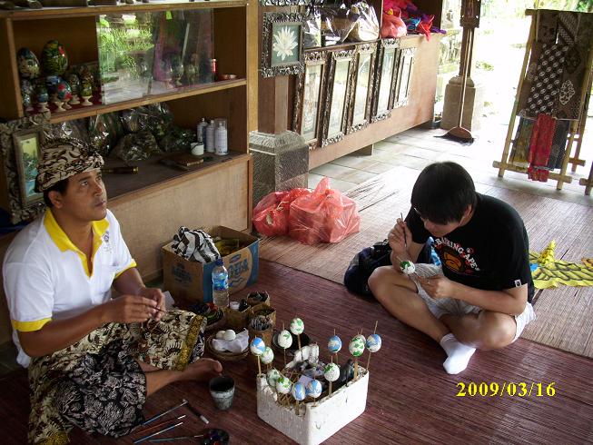 最后一天了,又要回队了,虽然早有思想准备,在订团之初,但还是有点不习惯。老婆先说了ninik丰田的好处,我嫌导游烦。昏昏欲睡,到了MAS,看了会儿木雕,还是挺精细的。随后去了Lake Leke的文艺厅,有学木雕、绘画、雕蛋、竹编等,还是很有意义的。看王子雕蛋多认真