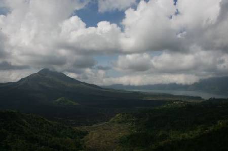 Ubud: 今天根据传统的旅游节目,包车游览了一些景点。 看印尼歌舞剧---银饰村---象洞---石窟---Kintamani火山---圣泉寺--Tegallalang。 印尼歌舞剧实在有些让我有当水鱼的感觉,演员甚至都不太敬业,好像不时在偷笑,当然,也许这是印尼歌舞剧的特色,我没看懂而已。倒是Kintamani火山让人觉得不虚此行。我当然也是在那家出名的自助餐餐厅吃的饭(怀疑都成指定项目了,司机甚至都没和我商量,直接把我拉去那家餐厅)。东西是出名的难吃,还好有风景搭救。这餐厅出名的地方就是露天餐厅就建在悬崖上,桌子外面就是悬崖。而一望无际的,是Kintamani 和 Lake Batur。只有一个词可以形容:壮阔。很久没看过如此壮阔的景色,实在很美丽。 晚餐去吃了著名的脏鸭店。店旁边是一片稻田,晚上会在田埂两旁的荷花灯点上蜡烛。最可爱的是他们把发呆亭建在稻田旁,里面放着矮矮的木桌和几个又大又舒服的靠枕。柔黄的射灯下,盘膝坐着或赖在靠枕上吃饭、喝茶、聊天,很是有情调。 Ubud的夜晚居然也是很安静的。八点多走在路上,已很少游客。我很纳闷,我以为晚上才是艺术家们蒲头的时候呢。