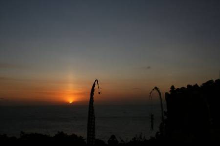Kuta: 终于来到旅行的最后一天。 趁了最后一点时间,包了辆车把经典的景点都晃了个遍。因为几乎把钱花完了,所以把包车的价格压得很低。最后也不够钱给小费。实在有点愧对那个因本周生意极为惨淡所以接受低价的挺好人的司机。 在夜晚离开巴厘,透过窗口,只能看见点点灯光。我想,我还会再来,这个空气中漂浮着香气,盛开着鸡蛋花,处处飞扬着风筝的岛屿。