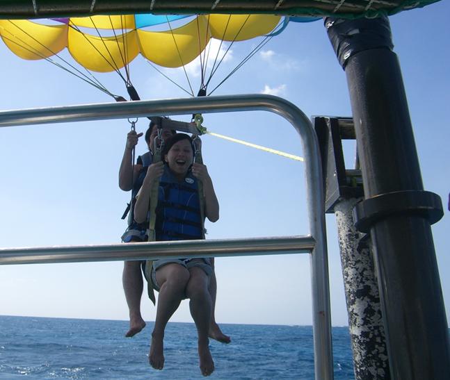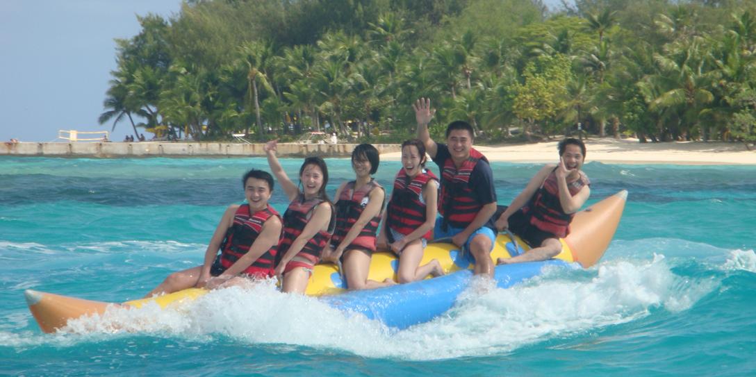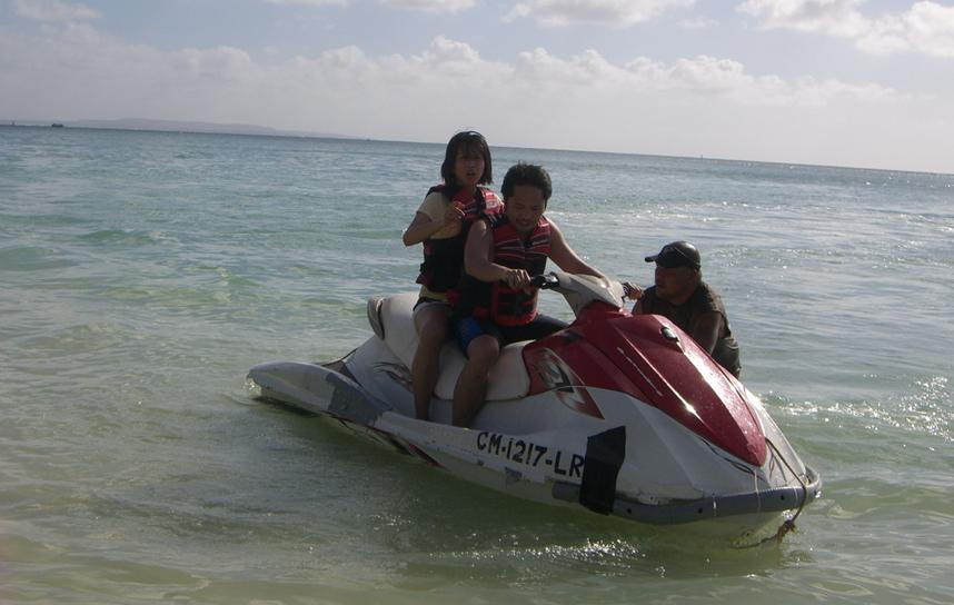 从塞班回来近一个礼拜了,一直无法提笔写下这次出游的记事和攻略,不是因为懒,是因为实在太丰富太好玩而不知道该从何下笔。塞班岛,一个让人有点陌生的名字,他的知名度不如关岛、长滩岛及普吉岛和其它知名岛屿,但好玩的程度绝对大出你的想象,一个行程要称为好玩,除了地方本身条件要够佳,也必须包含好的行程安排及导游服务,这次塞班岛蜜月之旅,如果满分是一百分,我给它的评价决不低于九十分,扣掉的十分或许是因为待的时间不够长及一开始跟团走的烂行程吧;我们行程是3/9~3/14塞班加天宁两岛,表面说是六天,实际上只有四天(两天塞班+两天天宁),因为第一天是晚上出发,回程是第六天的凌晨,短短四天怎么样玩的爽就看怎么安排啰!出发前的功课很重要,俺的老婆出发前作了充足的功课,网上的攻略没有一篇放过,笔记本上抄的密密麻麻一大堆都是前人留下的经验,虽然麻烦,但事实证明功课作的愈足,东西备的愈齐,玩的就愈爽!!我们夫妻俩备的东西不少,但不见得都是需要的,这里提出给各位参考一下,包括: 一次性水底相机:淘宝网买的,不是很好用,因为在水里不好用眼看,就瞎按啰; 数位相机防水套:建议买一个,数字相机在水里可以自己拍鱼,效果挺好; 防晒油:必备,擦少了就是皮肤又红又痛,觉都不好睡,回家后就是猛脱皮; 防水创口贴:如不小心被石头划伤了可用; 晕车药及简单药物:预备坐船用及其它急用; 矿泉水四大瓶:建议准备,因为那边水较贵,但只要你有钱那边买也行; 浴巾:基本不需要,因为去海边玩可以带饭店的去,只要记得还即可; 一些糖果蜜饯:就嘴馋咩; 一次性旅游内裤:懒人必备,穿完就丢,回家不用洗一堆内裤; 拖鞋:必备,那边任何地方任何场所都可以穿拖鞋进出; 换洗夏季服装:夏季衣物带个两三套即可; 泳衣:废话,去海岛难道不用备泳衣?那边买很贵喔; 太阳眼镜:太阳大可以带,不过我带去没有戴过; 数位相机及充电器:一定要记得,美景很多,数字相机很容易拍到没电喔; 美金:有钱就是大爷啦!!不过我不是… 最重要的一点,绝对不要听旅行社地陪的话,进了饭店后就跟他说你们要自由行不跟团行动,最后一天在机场跟他会合就好,不然会被他宰,住五星级饭店可是根本不是吃五星级,都带你去烂餐馆吃很难吃的东西,玩的项目收费高时间又短,旅行社地陪会吓你,说什么按照网络上说的去找什么当地导游没有安全保障、什么要你好好照顾自己的安全、什么他很难过之类的屁话,无非就是要你报名参加他的项目,注意喔,旅行社地陪还会假装将其中一项价格压的很低,然后要你报两项以上,而且马上交钱,千万不要被他唬了,坚持自己的立场,他不能把你怎样,他还怕你去投诉他勒,别忘了,你在塞班是在美国土地上,他们这些吃人不吐骨头的吸血鬼最怕被人投诉的!还有很重要的一点,别去天宁岛,岛上没什么好玩的,就一间宰人的中国酒店,两天就关在饭店里面的赌场赌钱,来回坐船还包你吐到肠子打结胃缩水,出来玩就是要玩的爽,何必找罪受呢?离开旅行社地陪后,人生地不熟的怎么玩呢?别急别怕,超级强烈推荐当地的胜记旅游,老大叫张炳贤,是个香港人,不只是个让人感到有家的感觉的导游,更是个会照顾自己中国人的好朋友,他玩的项目比旅行社地陪还要便宜,对塞班岛的历史背景及景点故事的熟悉程度更是无敌,旅行社地陪对上他只能说是小学生遇上博士生,找他就对啦!联系方式如下: 胜记旅游(win tour)张炳贤 电话:1670-2359868, 1670-2876608, 1670-2874321 QQ:849810728 Email:wintour2007@yahoo.com 那跟胜记的老大出去玩有什么好玩呢?问的好!除了价格合理,最让人喜欢的是他们的服务态度,两个价格比较起来虽然不是说天差地,但旅行社地陪的服务态度及抢钱行径实在让人看了直摇头,根本跟服务两个字沾不上边,现实无情我想是最好的形容词吧,胜记老大就不同啦,玩的项目玩的够爽,服务又好,他们的态度就是中国人照顾自己中国人的心态,把你当家人来照顾,实在是倍感温馨阿!说说玩的项目吧,最热门的就是水上四合一啰,包括香蕉船+浮潜+拖曳伞+摩托艇,真的好玩到不行,别人上军舰岛是坐慢吞吞的摆渡船,我们直接坐香蕉船杀过去,只有一个爽字可以形容,上军舰岛后看你要浮潜还是要晒太阳都行,给你玩到三点才回去,别人一样早上出发但只能玩到中午就得乖乖坐船回去,只玩三个小时,当中还要包含玩香蕉船和摩托艇的时间勒,怎么会好玩?相信我,我们浮潜玩到三点都还嫌不够勒,因为那里实在太漂亮啦,水深在腰际的深度就有很多鱼啰,手里拿着买来的面包及饭店的早餐香肠在水里晃晃,就会发现鱼实在多到吓死人,所有鱼都在抢着吃,不禁让人怀疑这些鱼是不是饿疯了,这里的海水相当的干净,不仅清澈无比,还没有一般海水的腥臭味,真的是一个好地方,还有还有,浮潜用具是免费借你的喔,不像其它人还要花十美金去租,摆明是抢你嘛,在我们玩浮潜之际,老大的得力助手阿宾,一个爱喝啤酒且会讲多国语言的广东人,会全程帮你看行李,相当的安全,回程时是坐快艇回去的,因为还要玩拖曳伞,两人一组,当你装备穿好扣好后,呼的一声人就已经飞上空中啦,在空中可以鸟瞰整个海面及不远处刚离开的军舰岛,享受在空中翱翔的快感和舒畅,任你大喊大叫大声唱歌都不会有人嫌你吵,快艇船长还会故意减慢速度让你慢慢掉进海面,当水面到你腰际时再加足马力把你拉出水面,再次飞了