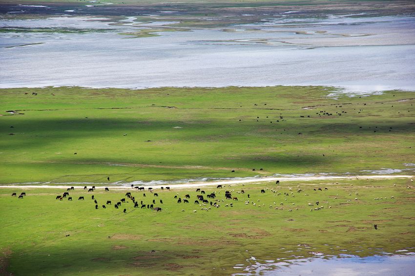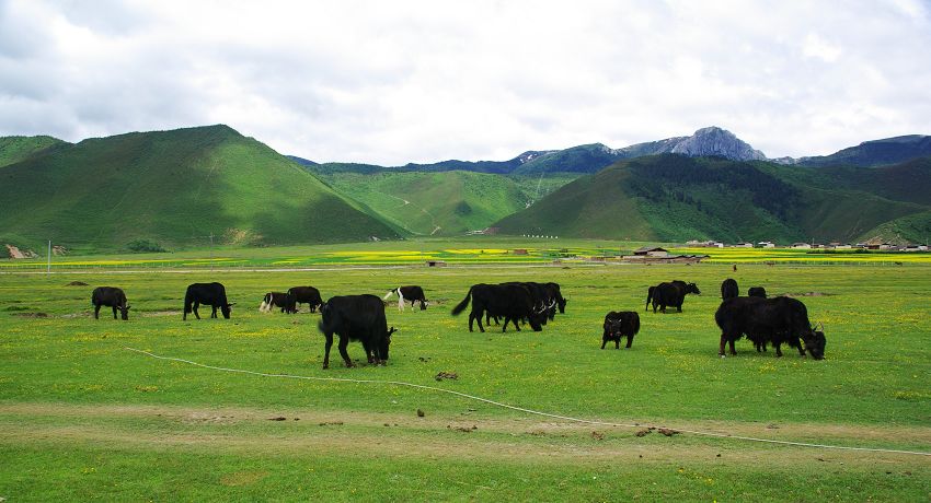 | 草原上吃草的牦牛,牦牛是藏民养得最多的牲口,一个藏民家少则几十头,多则上百头,牦牛一身是宝,体型巨大,有着高原之舟的美名!