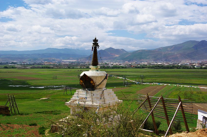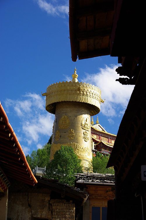 下午我们来到了香格里拉的古城,香格里拉古城的初始叫法是“独克宗”,位于香格里拉县东南隅。唐仪凤、调露年间(公元676-679年),土蕃在这里的大龟山顶设立寨堡,名“独克宗”,一个藏语发音包含了两层意思,一为“建在石头上的城堡”,另为“月光城”。后来的古城就是环绕山顶上的寨堡建成的。与此呼应的是在奶子河边的一座山顶上建立的“尼旺宗”,意为“日光城”,其寨堡已经没有了,原址上是一座白塔。