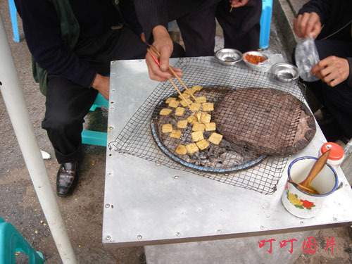 (黔灵公园里的烤小臭豆腐)毛一块。有的老板还会把它摆的很整齐,吃这个其实享受的就是那种气氛。