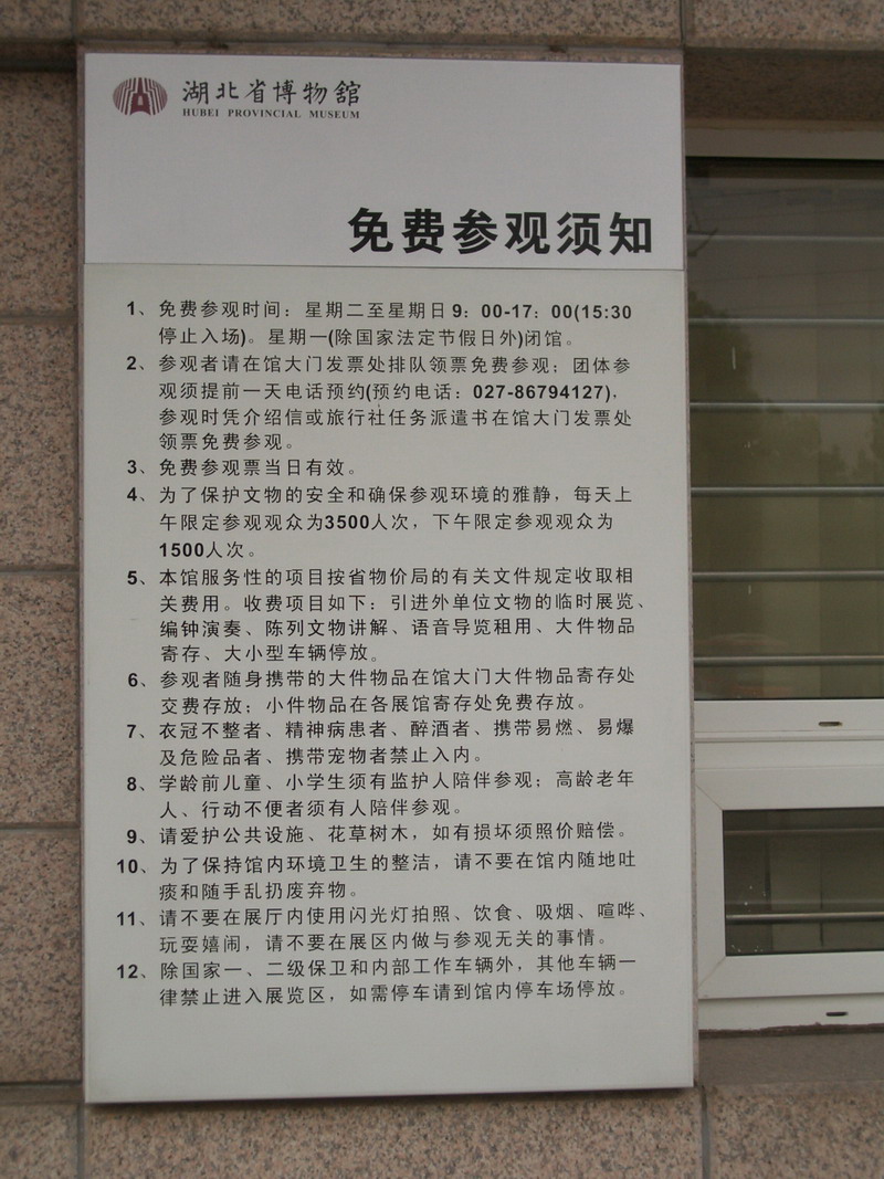 DAY3: 今天最主要的行程就是省博,一大早就起来了,买了热干面当早饭,糯米鸡和茶叶蛋当中饭。(提起热干面,许多人都说很干,吃不惯,可是我却疯狂的喜欢它,三天吃了四顿不同人家的热干面,就我个人儿言,我还是认为武大附近的一家私人小摊的热干面最好吃。) 步行到宜家装潢广场,坐14路直接就可以到省博了,早上路况好,车子开的飞快,7点半就到了省博,没有什么人,只能在周边逛了一圈,等我8点多再回来的时候,人都聚集起来了,等到8点半的时候,至少排了五六百人,九点发票的时候,门口的队伍只能用壮观来形容了。拿了门票,一个个的过安检,比飞机场的检查还要严格,不能带水进去,不过里面的饮料也还算公道,矿泉水1.5元,饮料3元。借了个讲解器,20元/3小时,40元/全天,原以为3个小时怎么也看下来了,事实证明我的想法是严重错误的,3个小时只看了一半,还是挑重点,后悔啊。。。。下次来的时候要花整整一天来好好亲近它。 结束参观后去了精武第一家和周黑鸭买了好多鸭脖、鸭翅膀、鸭锁骨和鸭子,来得时候是身轻如燕,回去的时候是步履艰难。而且竟然还拎着这么重的东西,去了长春观逛了一圈,因为几天来都路过没有进去,想都到门口了,怎么样也要进去看看,看完后不由的感叹,重佛轻道啊! 回探路者拿了行李就直奔武昌火车站,还后留的时间充裕,原本十来分钟的路,那天竟然堵了五十分钟。 顺利乘上k13,上海,我回来了。 行程:宜家装潢广场 14路→省博 605路→江汉北路 打的→解放大道(精武第一家) 703→付家坡(周黑鸭)电4路→大东门(长春观)543路→螃蟹甲 511路→武昌火车站 花费:火车票 155*2 市内交通:34 门票:80 住宿:95 吃饭、手信及其他:267.3 一共花费:786.3元