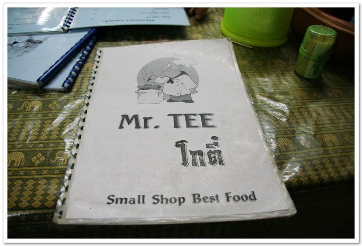 太阳一下山,我们马上抡起桨开始往回猛划。因为一但天黑了,就什么都看不到了。还好,在最后手快要断掉的时候,船抵达了岸边。:D 这个时候已经饿的快不行了,于是在回旅店稍作整理以后,我们马上就出来吃饭了。从Phi Phi Inn出来穿过一条小巷就是饭馆了。原来这家就是攻略上介绍的Mr. Tee,感觉就像那种街边小吃。不过挺实惠,味道也很不错。我们点了一个椰子和一个Mango Shake,味道真是棒极了。椰子在喝完椰汁以后,还可以用勺直接舀里面的椰肉吃,真是爽死了,哈哈!Mango Shake也是非常好喝,我们都有想一样点两份的冲动,呵呵。吃的呢,我们就点了一份PAD THAI和一份糖醋鱼。不过这家上菜的速度真是慢,等了好半天,又催了好几次才上上来。看在他有那么好吃的椰子和Mango Shake的份上,也就算了。呵呵。