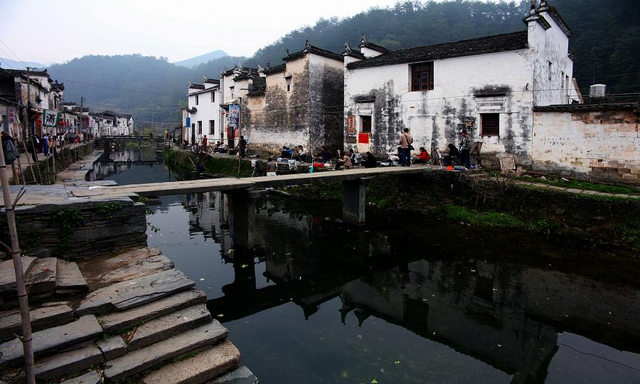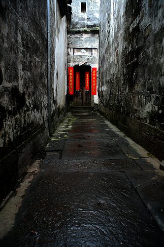 春染婺源(三)六、理坑才子多如麻 墙挂虬龙千年藤, 窗镶艺雕小姐楼。 浣纱春鸭共戏弄, 清渠倒卧众马头。 由于向往已久,功课也做了不少,了解了婺源许多景点商业化严重,且人满为患。此次出游选择以古、野、僻、偏为主,不是偏远村落,就是路边野景。昨天去的庆源,就在婺源东旅游线路的尽头,属于还没全部开发景点;今天所到的理坑则是北线最北头的村子,翻一座山,就是安徽了。 婺源的村名,有的极具诗情画意:长滩、清华、晓起、江湾、思溪……;有的则含浓浓的田园特色:菊径、桃溪、梅林、延村、严田……。 在婺远凡是叫“坑“的村落必定是在山坳里,是取其山中盆地为“坑”吧!建于南宋初年的理坑,就象藏于锦峰秀岭山间盆地中的珠宝奁匣,山青水秀,更具丰厚隽永的人文传承。 ——理坑村口好风水的“水口“—— 走进村口,迎面是条小河,河上一座小巧端正的石拱桥,桥上建亭,桥亭合一,名为“理源桥”, 桥下青片石筑垒的溪埠上,泉水跌宕,湍湍淙淙;清沏见底的溪流中,锦鲤戏嬉,从从容容。这种水中水上建筑是婺源村庄的特色,叫“水口”,是风水旺的象征。 ——古朴自然的微派风光—— 漫步通衢的潺潺小河沿,埋坑逐渐展示着迷人的风采。古桥清渠与黛瓦粉墙映衬,桃红柳绿与酒肆店招媲美;远山近屋,苍松翠竹,徽式民居,坦桥溪埠,一景一物几百年来这样自然地融合,产生了清丽脱俗的山村画卷。 ——清明脱俗的漂亮民居—— 一排排浸渍苍桑灰白的山墙,一列列充满故事高翘的马头,象一本本老旧的线装本古籍,鳞次栉比,错落有致地沿着溪径,从村头向村中递次排开。黑白分明的徽派建筑倒影在溪水中,仿佛与流水相邀浅饮,细语对唱。河水激流,对吟着永远是新时代的物事;古屋肃立,诉说的老而弥坚历史。 ——象线装本古籍的微派建筑—— 这里的视觉愉悦是有冲击性的,在这里,留连忘返;在这里,谋杀胶片,是极其自然的事情。伫立石板桥上,是那种高古悠远的感觉,详和亲近的体验,很象小时候牵着母亲的手回老宅。 沿河岸两旁构筑的明清府第,戗角飞檐,马头高昂,气宇不凡,是官绅豪贾的痕迹。漫步其中,巨大古老书籍在眼前一页一页翻开。 ——气宇轩昂的府第—— 这是个崇尚“读朱子之节,服朱子之教,秉朱子之礼”的古村。一代又一代传承祖训,秉承勤学耕读,造就人才辈出。先后有七品以上官员三十六人,进士、学士逾百人;著作三百多部,更有5部列入《四库全书》;“尚书第”、“司马第”、“进士第”、“大夫第”官宦宅第比比皆是。此地学风蕴藉,仕途沛然,可见一斑。 ——深邃狭窄的小巷—— 村中巷道深邃狭窄,一式的中间青石板,边上镶麻条石铺就。经久磨砺,泛着幽冷的青光,雨后徜徉之上是种湿漉漉的浪漫。 小巷两侧老宅年代久远,墙体青苔斑驳,黑霉恣意地涂抹着阴森图腾,逾显昏暗诡秘,高深莫测。穿行在这氲氤着古老气息的小巷中,就好象坠落时光遂道:长辫马袍仕宦缙绅,华服 ——宅第气势轩昂的门头檐—— 巷窄墙高,是埋坑宅第特点之一。房子都造得老高,对外的窗户建在高墙之上,窗洞窄小,乍一看还以为是个墙洞。据说高墙小窗是为了防止女眷们“红杏出墙”。余想当年此地氓流匪盗甚多,主要应该是为了防盗贼吧。 绕过门前胖胖的石鼓,跨过高高的门槛,信步踏进官宦大院,全是浸满柴火稍带霉味的典型的徽派风格。院落大门都偏开斜向在房屋之侧,房屋都是砖木结构,以中轴线对称分列,中为厅堂,两边为室,厅堂前方洞开长方形天井,下接同形青石落水地,并置一口水缸,谓“四水归堂”,一方面采光通风,另一方面下雨时“肥水不流他人田“。 ——百年小姐楼上的临窗“美人靠”—— 整个房子方柱石础,隔扇门窗,石板铺地,木质构件不油漆。梁枋窗楹深镂浅刻着斑斓绚烂的木雕,门套屋瓴细雕精凿了栩栩如生的砖雕,石鼓廊柱等处则是精美别致的石雕。 有祝福家丁兴旺的“麒麟送子“;有赞美生命的“松鹤延年”;当然离不了寓意财富的“刘海戏金蟾”;最要紧的是礼制和仕途,就有“二十四孝图”和“连中三元”、“鱼跃龙门”…… 堂屋、轩斋、天井、格扇、栏杆上的“三雕”工艺精湛。有的瑰丽隽美,有的细腻纤巧,它们就像是在岁月长出来,与马头风火墙妥贴地生在一起,与水磨青砖壁恰当地融在一起,形成了儒雅古朴之美。 ——斑驳古老的风火墙—— 很让人扼腕叹息的是,许多的木雕、石雕和砖雕都不再齐全,不是砍了头便是凿去了手。就是保存完好的雕刻作品也是理坑有识之士在当年那个浩劫年代用泥土糊在雕刻上,再刷上石灰水,外面写上“毛主席万岁”大红字,没人再敢“太岁”头上动土,得以保存至今。 看着这些历经岁月的烟熏火燎,劫后余生的“三雕”,心中祈求的是人类永远和平和善和睦的想念。 离开理坑回望被烟雨笼罩的古村庄,感觉到这里决没有安徽宏村、西递的徽派建筑那么高堂华屋,宽敞气派。也许宏村、西递是经商人家,富可一方,日收斗金,其家宅自然跃富亮财风光无限;而理坑多为文职官员,也许是表明谦卑,把自己于窄巷高墙后深隐,但余愿意相信这是自律廉洁的亮节清风。 至少从商人和官员的建筑的张扬和收敛风格上,说明了当时官员尚存敬畏之心,还有廉正之意。不象现在有些官员,动不动贿收千万不义之财,来不来盖造 “白宫”“天安门”……已经没了忠义孝悌的起码官腔了。