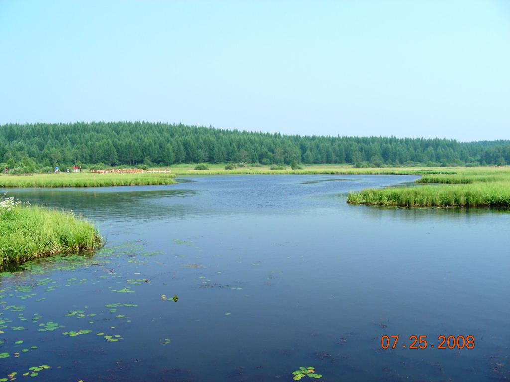 七星湖离泰丰湖不远,景区以众多的草原湖泊湿地组成,是两天来见到的打理得最像样的景点,但却有个怪名字 —— 假鼠妇草湿地公园。公园内原木搭建的栈桥可以通达湿地深处。茂密的绿草、蓝色的湖水,还有在湖面嬉戏的水鸟,是一处令人留连之地。